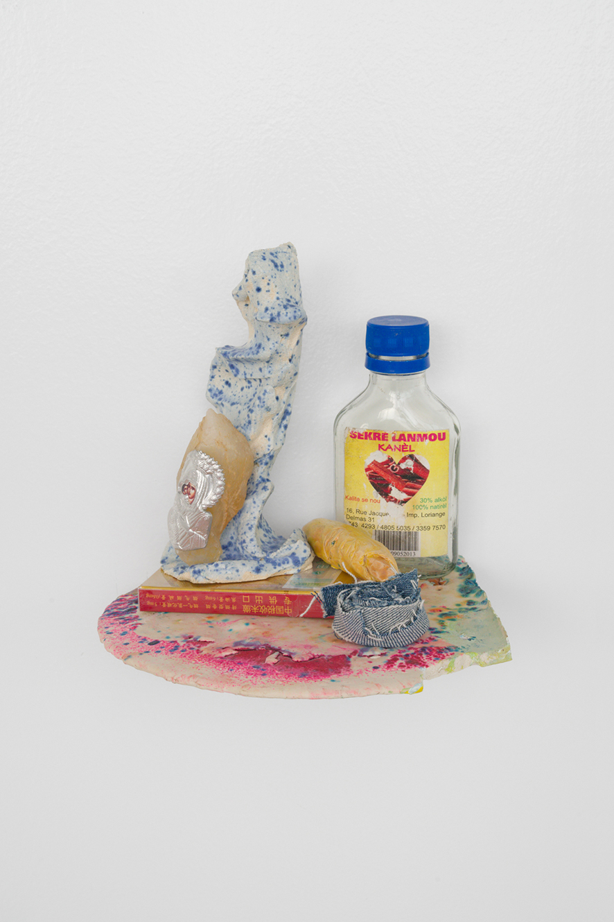 Cigarettes, glazed ceramic, bottle and trinkets for good luck