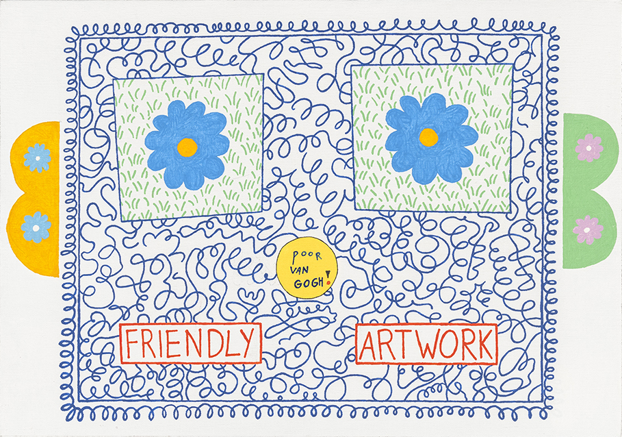 Lily van der Stokker, Friendly Artwork Poor van Gogh, 1989. Acrylic paint on linen, 30 x 42 cm. Unique. Photo Marc Domage.