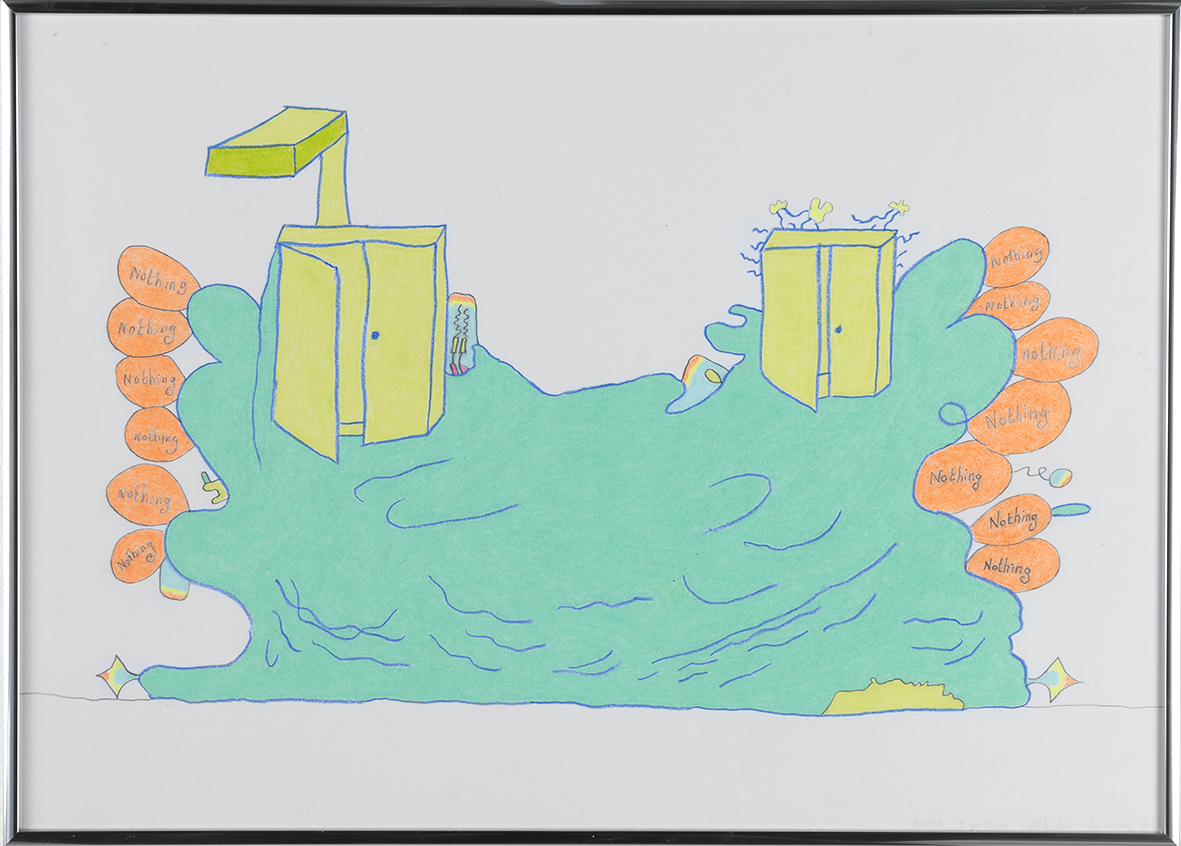 Lily van der Stokker, Nothing 2 (design for wall painting), 2019. Color pencil and pen on paper, 30 x 42 cm. Unique. Photo Marc Domage.