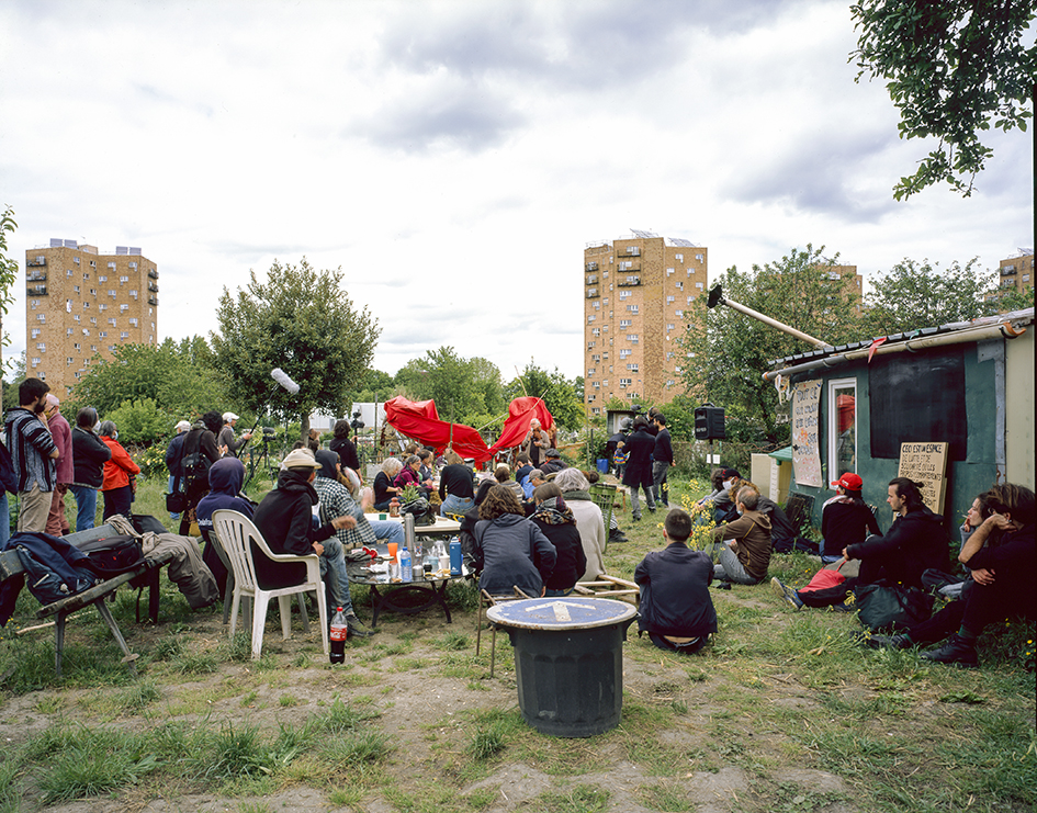 Assemblée générale et conférence de presse pendant laquelle l’occupation des jardins a été annoncée afin d’empécher leur destruction, Jardins ouvriers des Vertus, Aubervilliers, 23 mai 2021