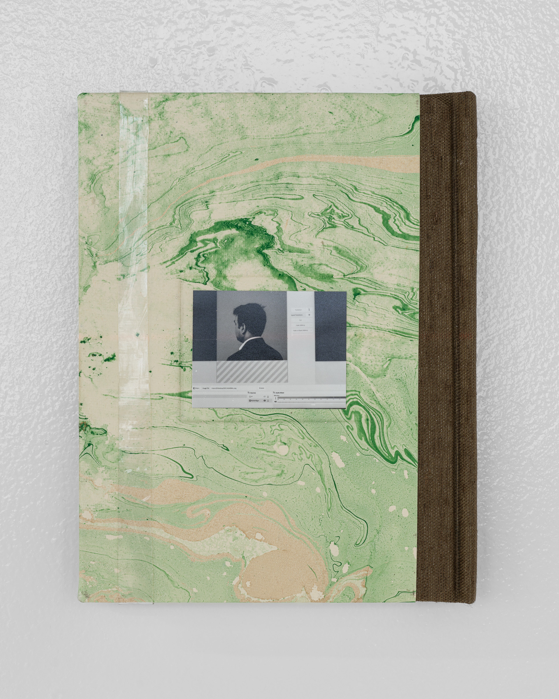 Barry McCarthy / Of Contact Prints Of Open Broadcaster Software Screen Shots Of Rückenfigur Portraits Of Streaming Services Executives Of, 2025, 80 pages, Letterpressed text and tipped in Silver Gelatin Contact Prints, Case Bound, Metal fastener and screws, 14.3 x 18.4cm. Photo: Grégory Copitet