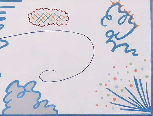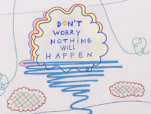 Lily van der Stokker has been renowned since the early 1990s for her playful wall paintings in bright colors. Floral motifs and ornamental clouds are dominant elements in works whose aesthetic and fluorescent palette bring Pop art to mind. Meticulously executed in a time-consuming and labor-intensive process, the murals are based on small-format drawings the artist prepares with scrupulous precision. Simplicity and humor are hallmarks of van der Stokker’s oeuvre. Integrated text fragments or affirmative messages often directly address the viewer. Recurrent concerns in her art revolve around the stereotype of “femininity,” ostensible banalities, but also the economics of art and everyday life or the artist’s existence. Her playful use of color can also be read as a challenge to a conventional bourgeois conception of art for which exuberant colorfulness is incompatible with reflective gravitas.