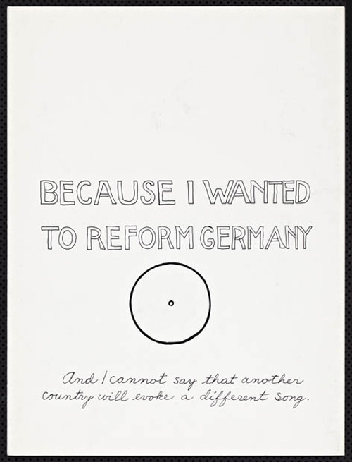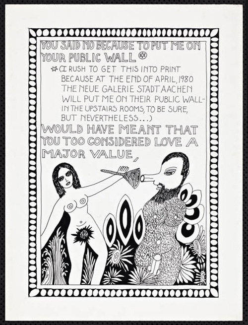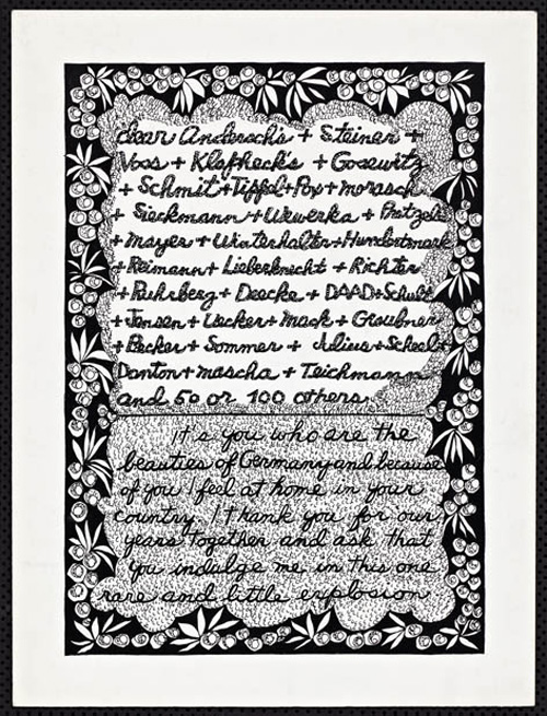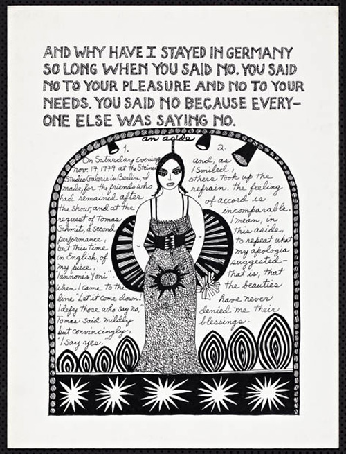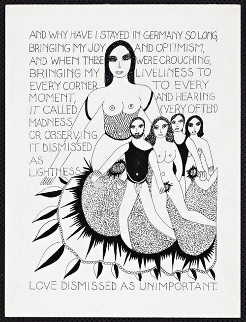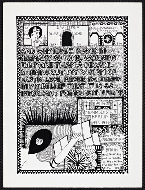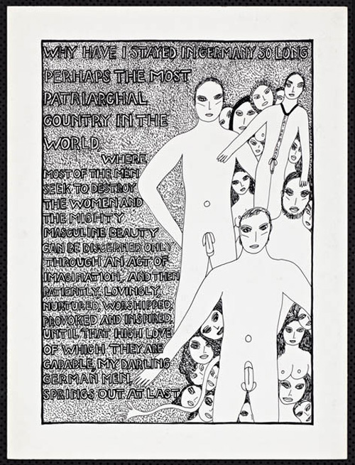 An Explosive Interlude197913 drawings, ink on Bristol board each 40 x 30 cm. Iannone moved to Berlin in 1976 (where she still lives today) when she received a prestigious Berlin Artists-in Residence fellowship from the DAAD. “An Explosive Interlude” evokes her personal relation to this city and also to Germany. |