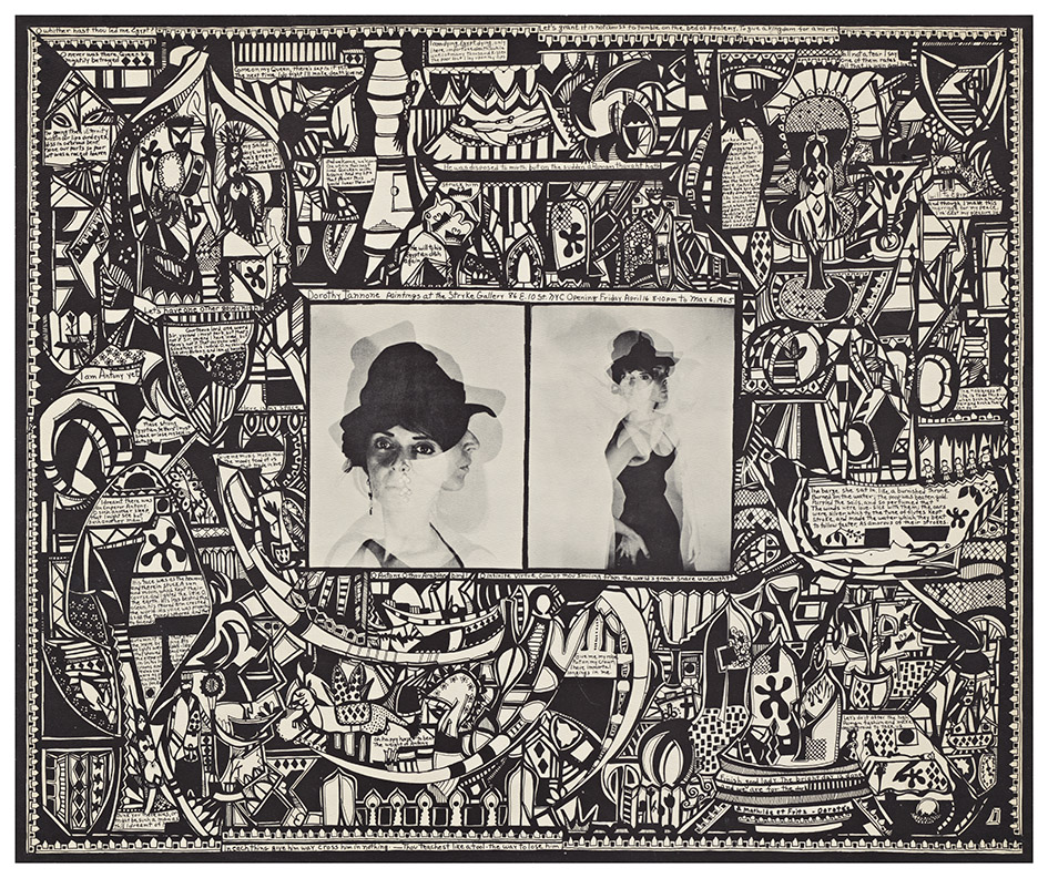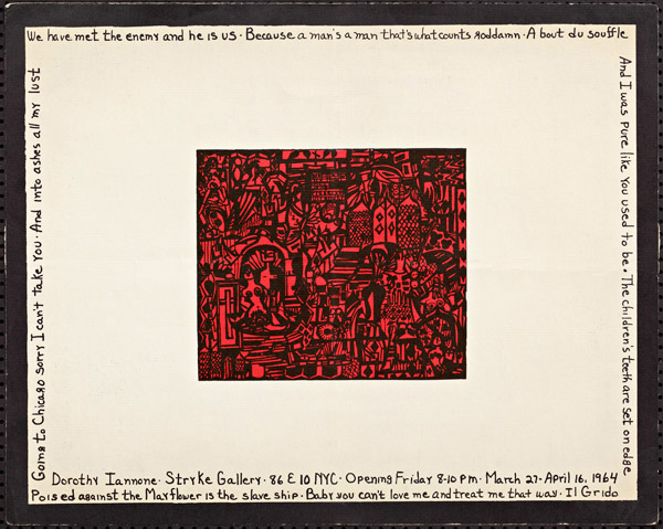 Invitation announcement : Dorothy Iannone at Stryke Gallery, NYC, March 27 - April 16, 1964.