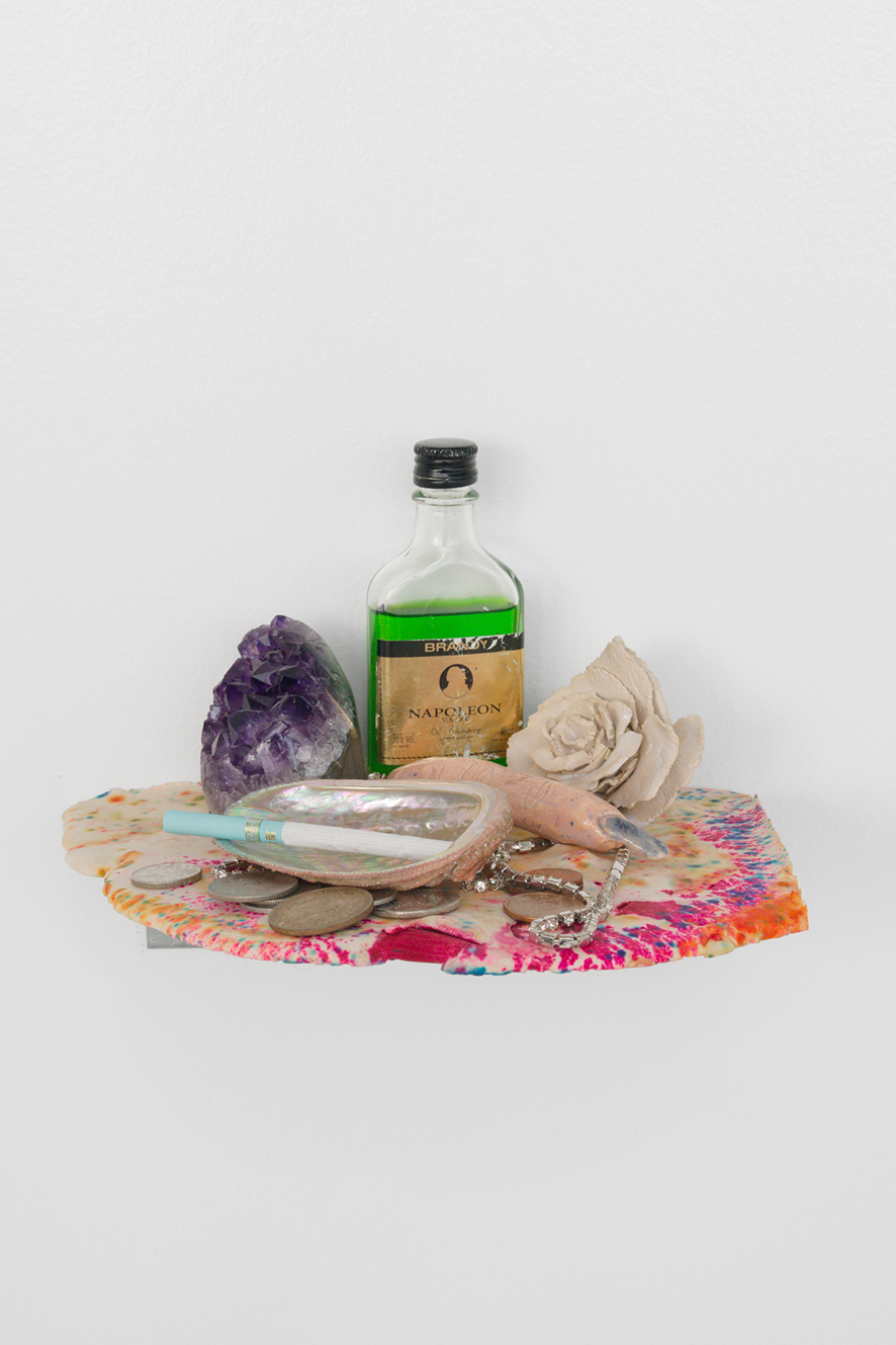 Cigarettes, glazed ceramic, bottle and trinkets for good luck