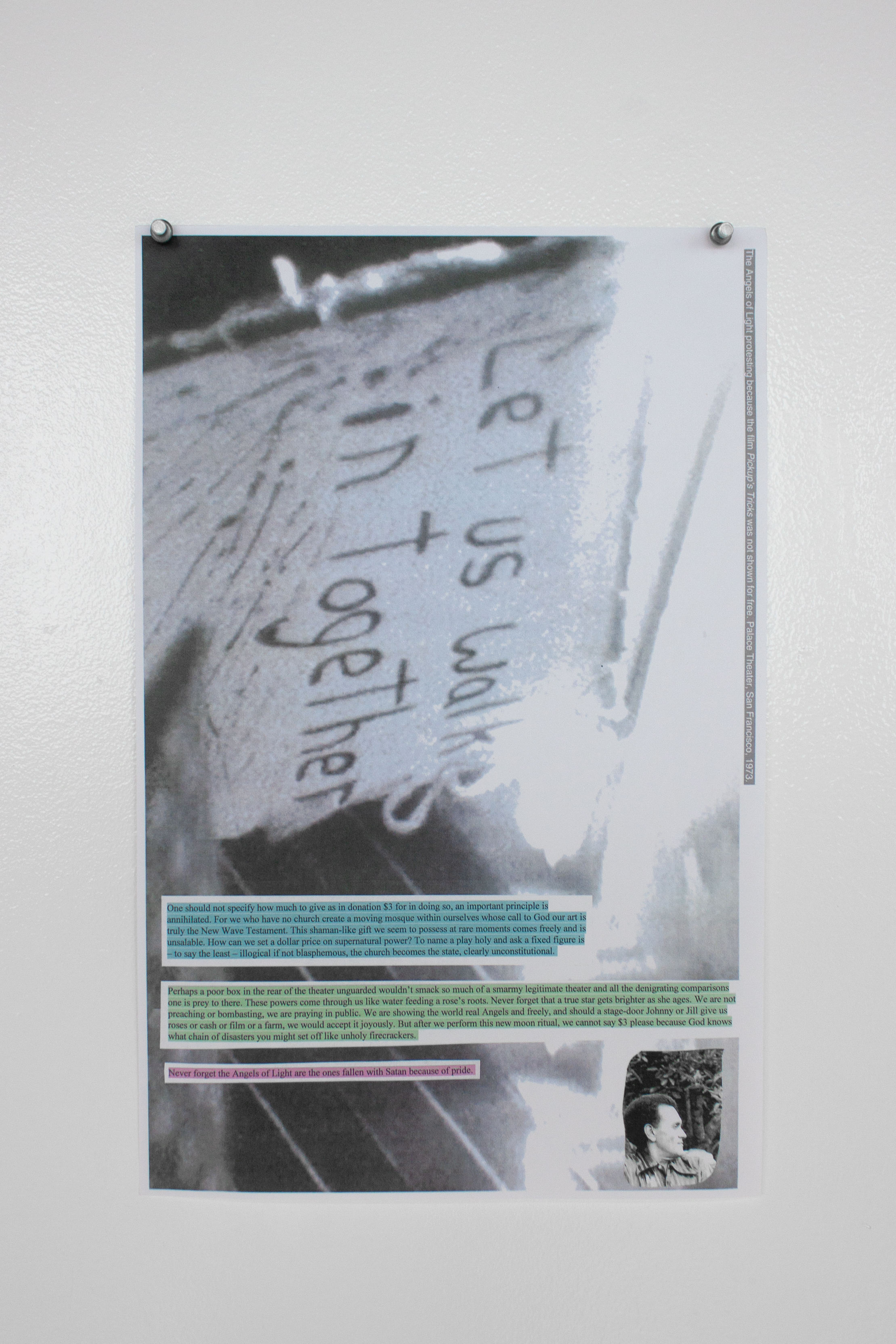 Le nouveau film de Ben Kinmont, Saints paradice (2024-2025), s’appuie sur les archives en film 8 mm de l’artiste Jilala Jet von Jalopy, entre autres, pour retracer le parcours du Angels of Light Free Theater et les mondes nouveaux qu’ils ont rendus possibles en partageant une vie communautaire. Les Angels of Light ont été fondés par Hibiscus en 1970 et sont issus de la Commune des Friends of Perfection. Les images couvrent les années 1970 à 1978 et montrent les Angels sur scène et en extérieur, se produisant dans divers parcs de San Francisco. La bande sonore du film est interprétée par Scrumbly, membre fondateur à la fois des Angels of Light et des Cockettes.