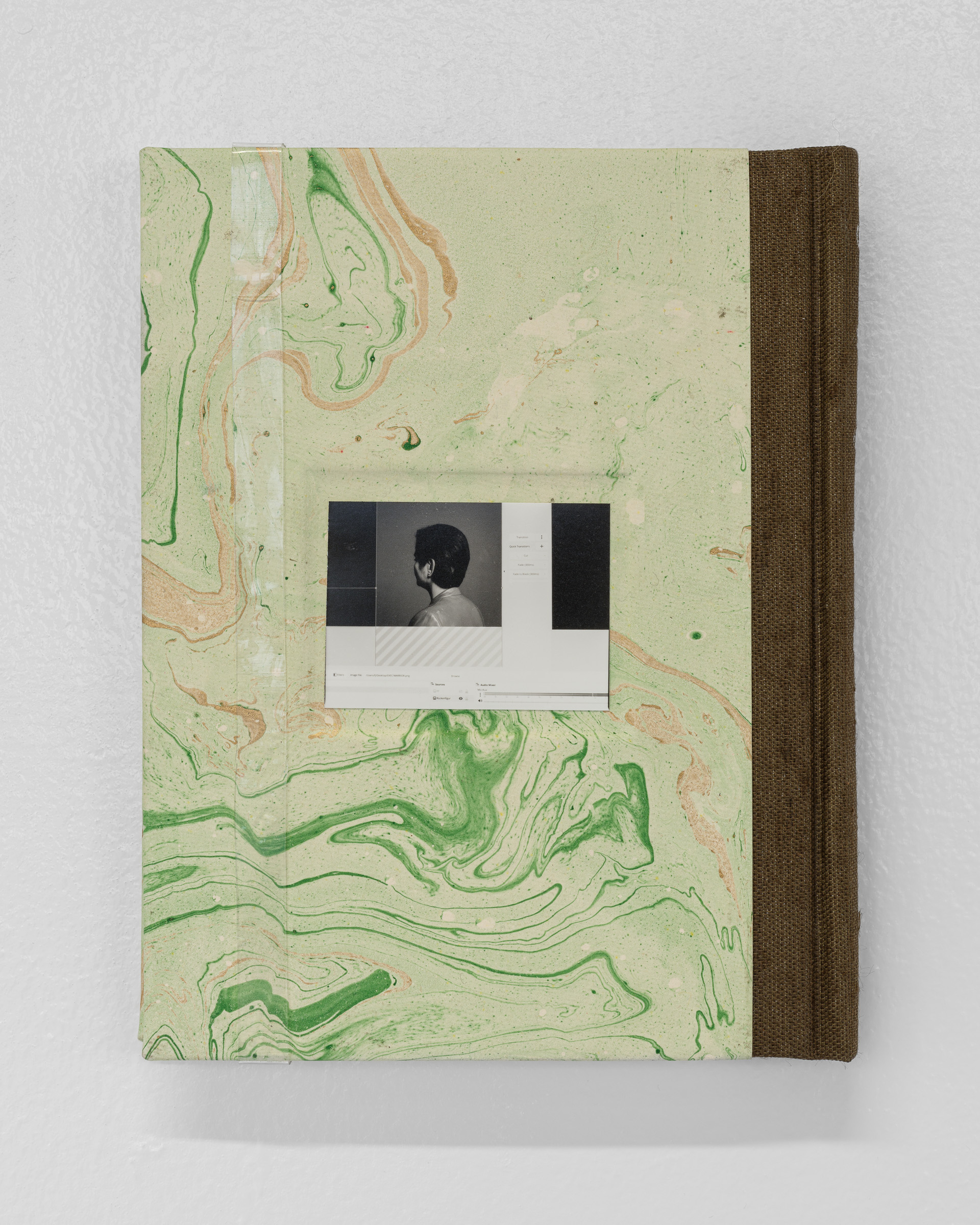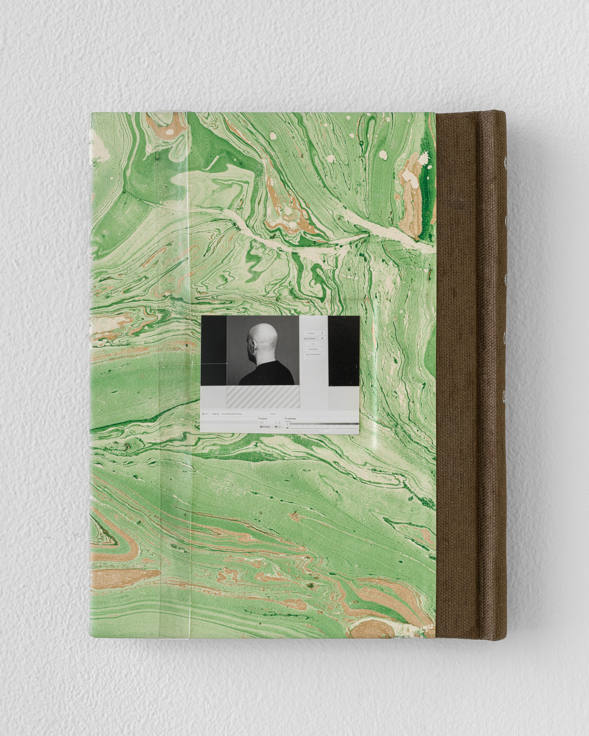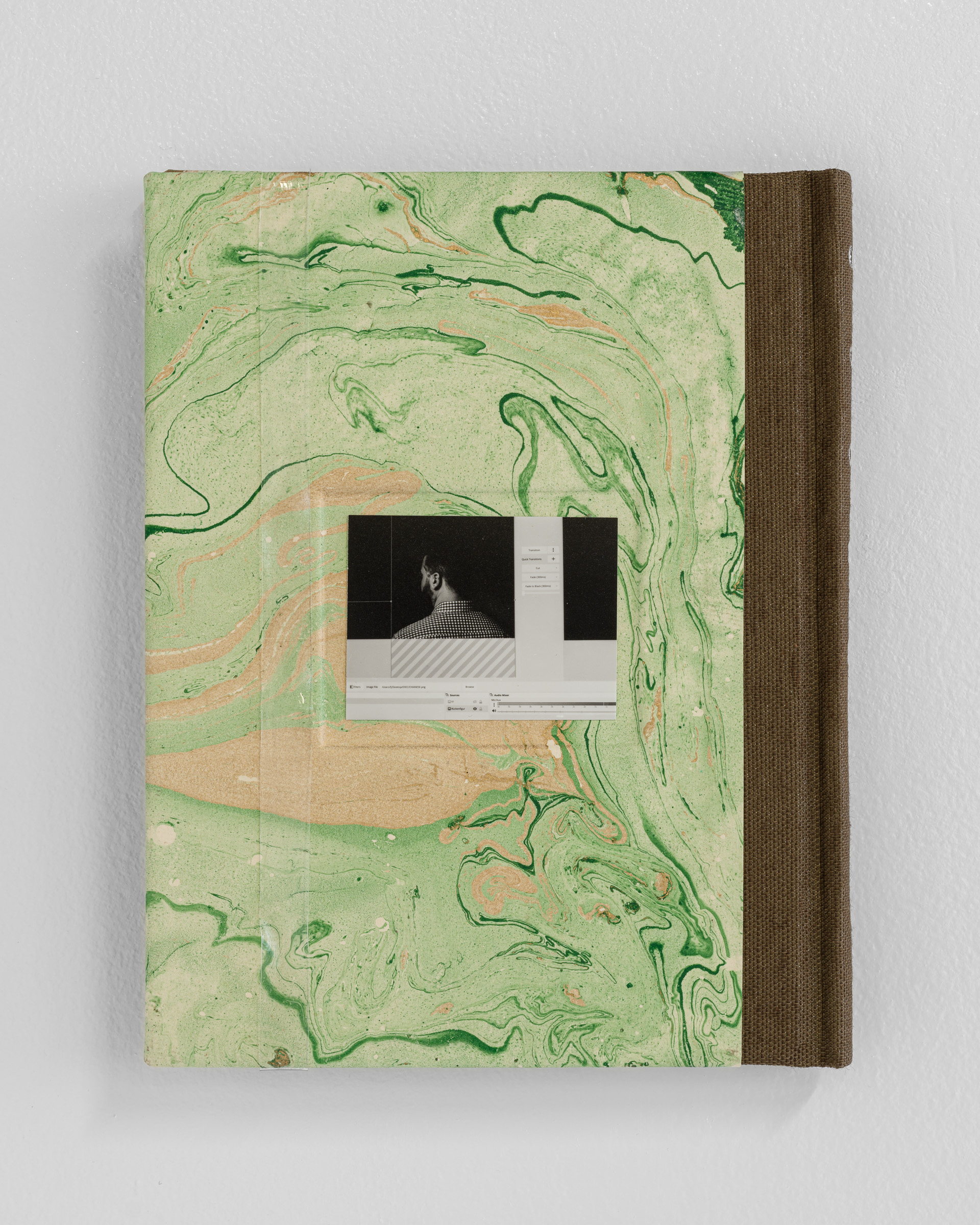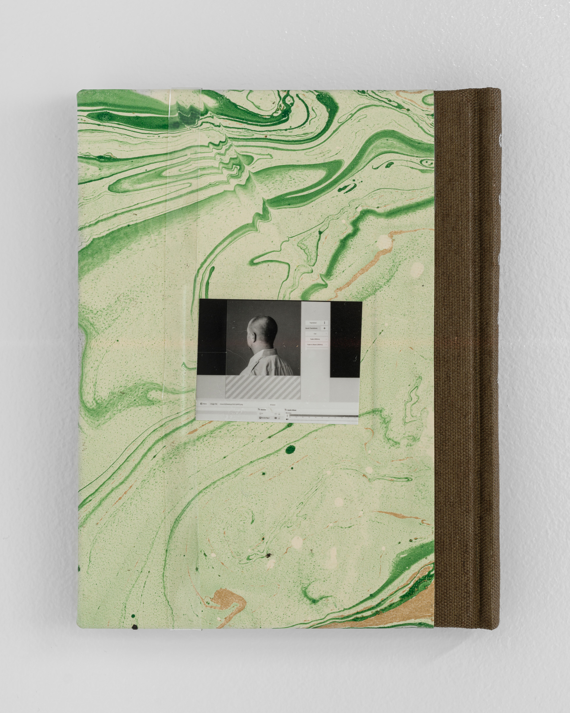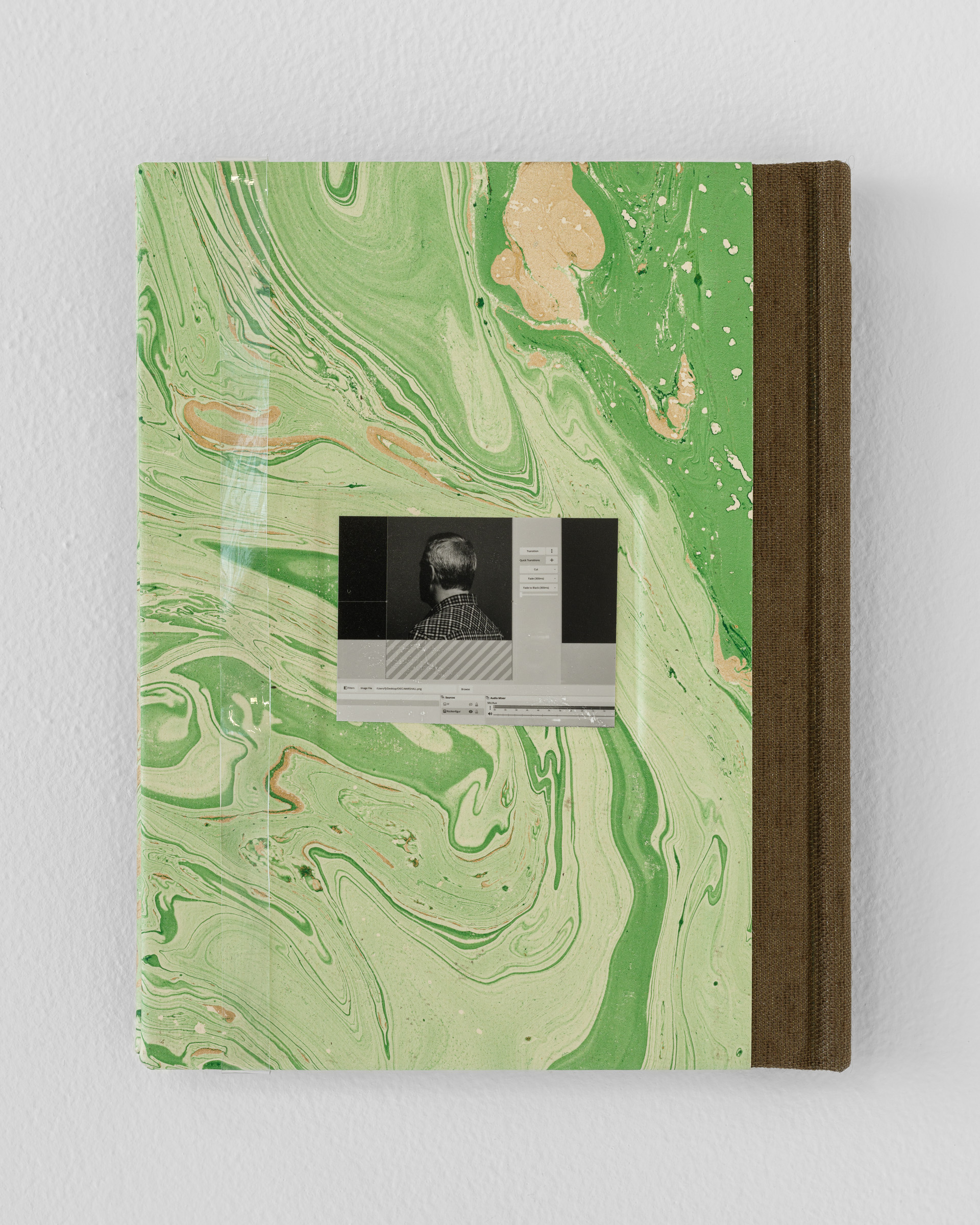 Woody Marshall / Of Contact Prints Of Open Broadcaster Software Screen Shots Of Rückenfigur Portraits Of Streaming Services Executives Of, 2025, 80 pages, Letterpressed text and tipped in Silver Gelatin Contact Prints, Case Bound, Metal fastener and screws, 14.3 x 18.4cm. Photo: Grégory Copitet