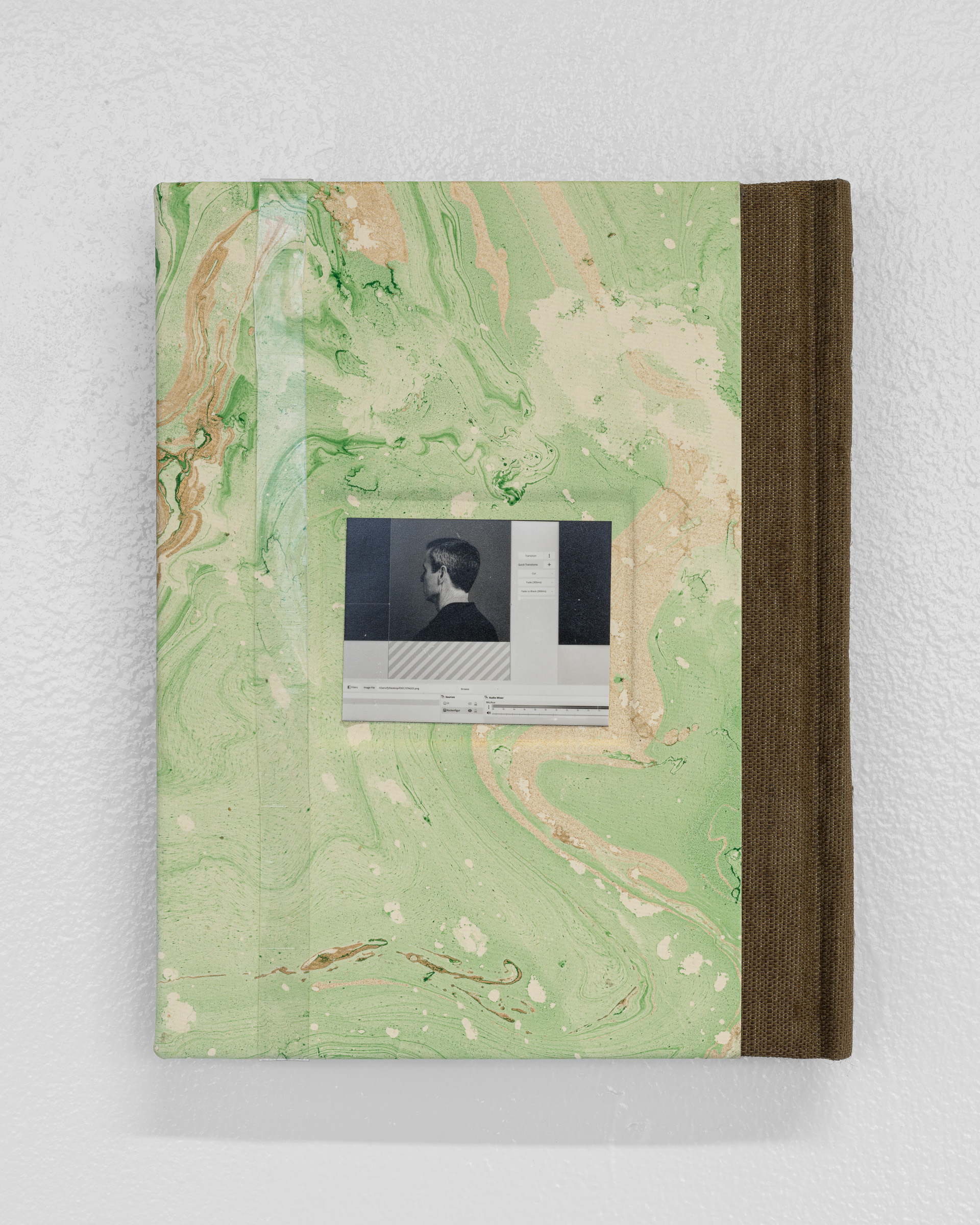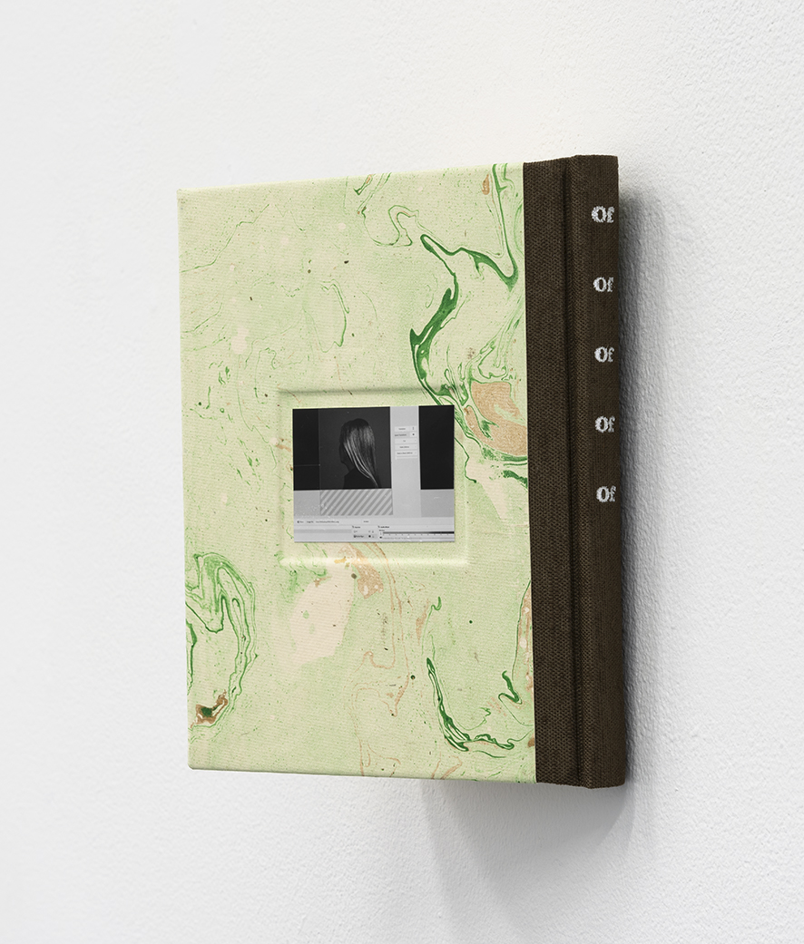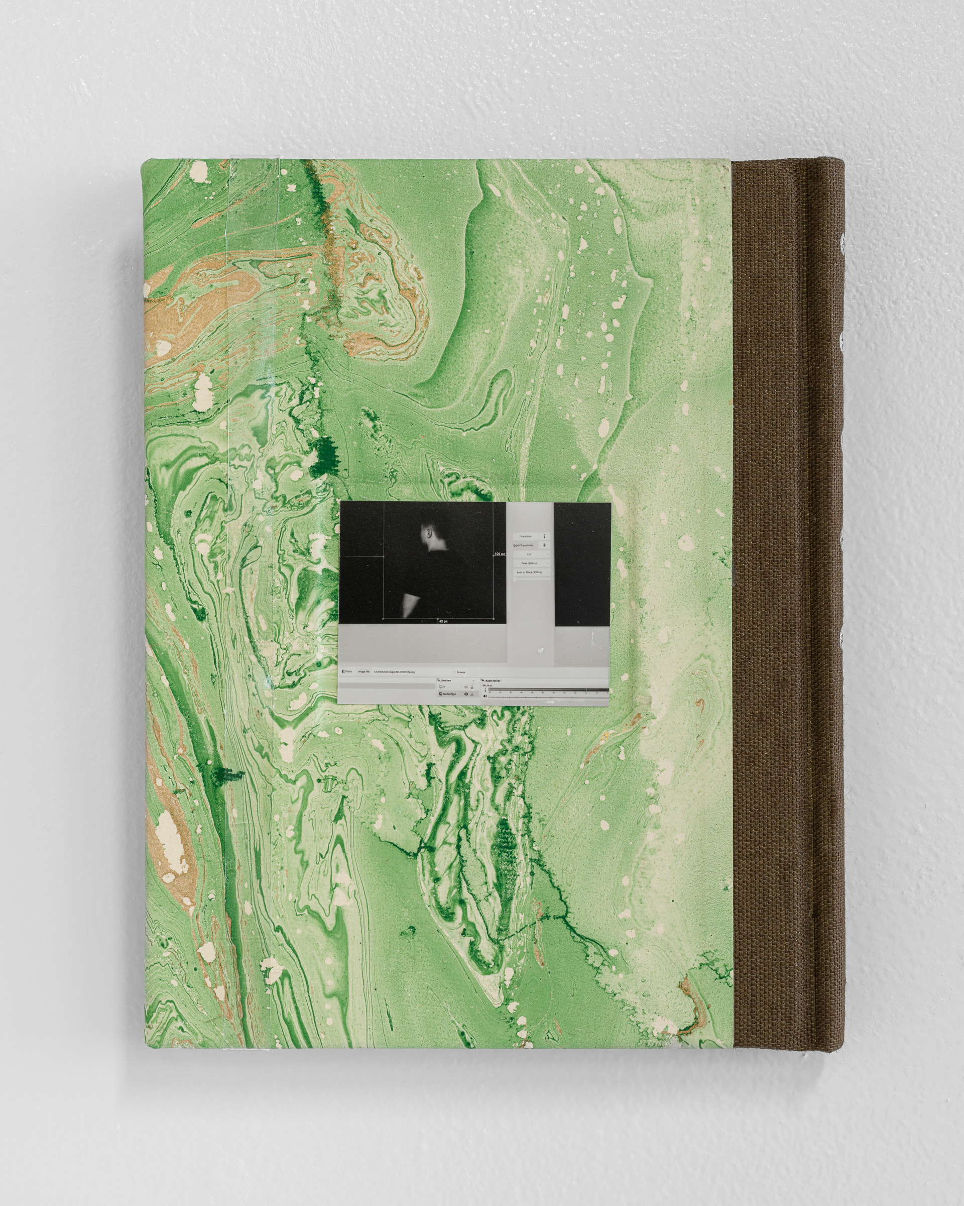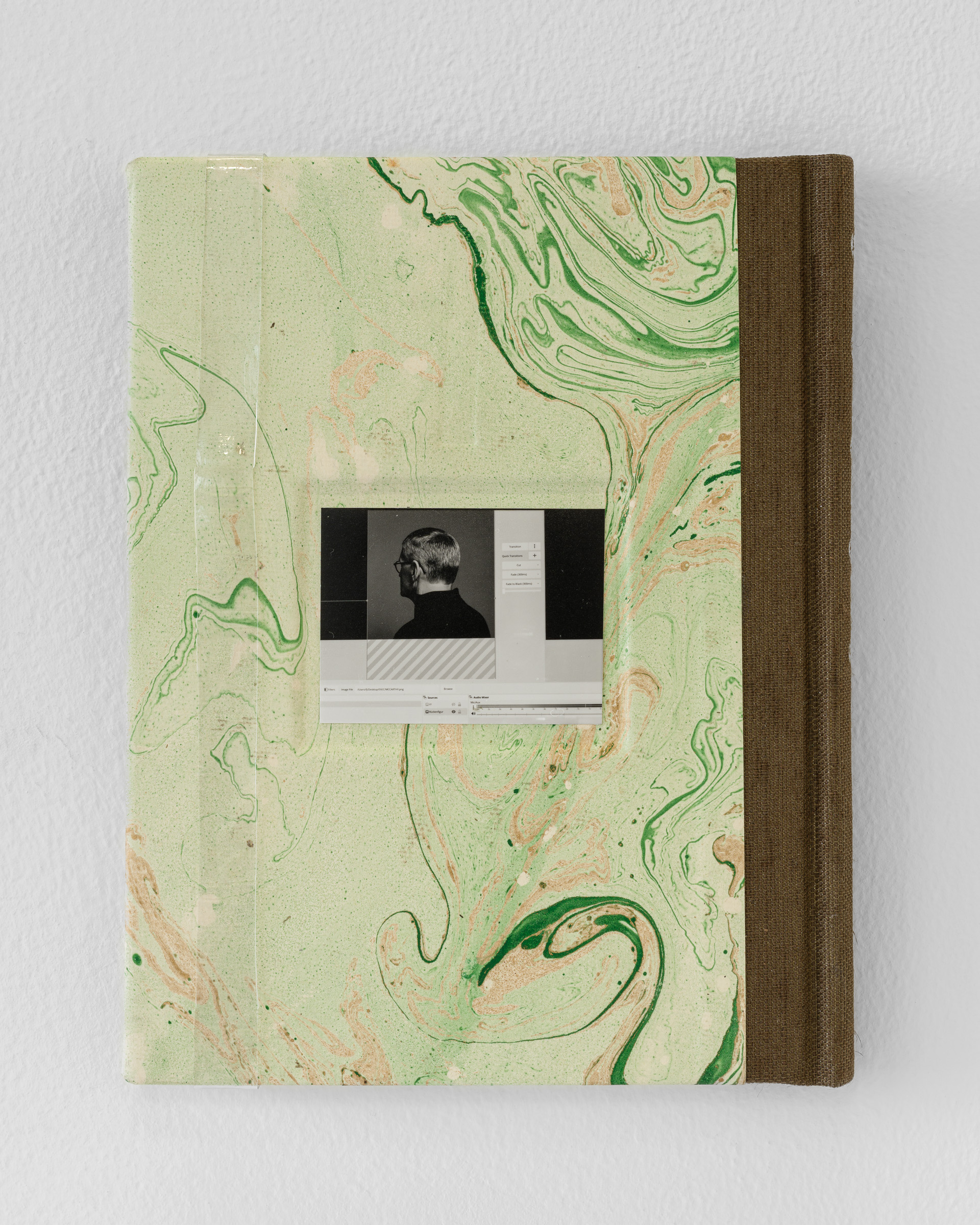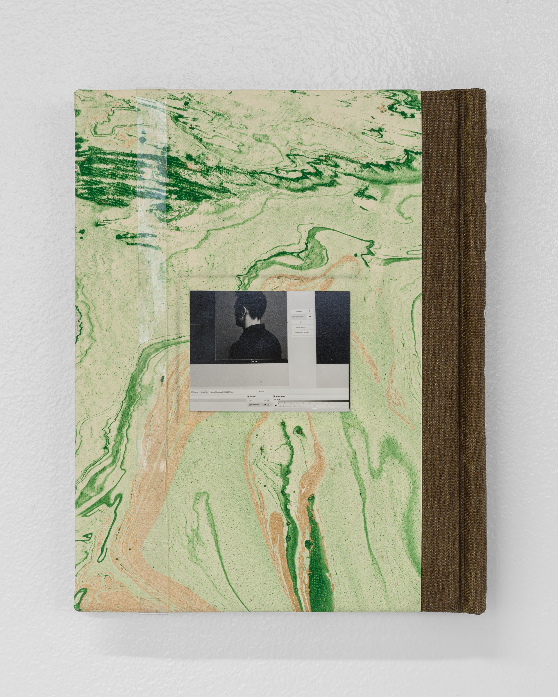 Woody Marshall / Of Contact Prints Of Open Broadcaster Software Screen Shots Of Rückenfigur Portraits Of Streaming Services Executives Of, 2025, 80 pages, Letterpressed text and tipped in Silver Gelatin Contact Prints, Case Bound, Metal fastener and screws, 14.3 x 18.4cm. Photo: Grégory Copitet