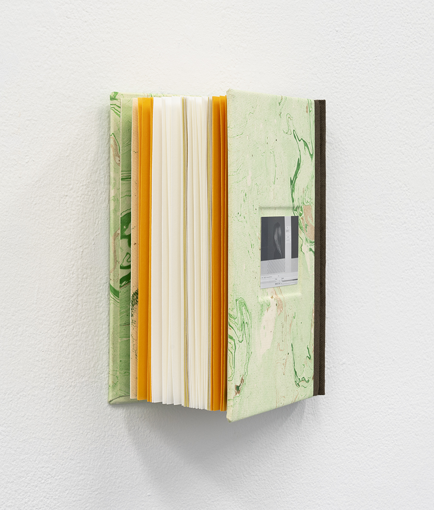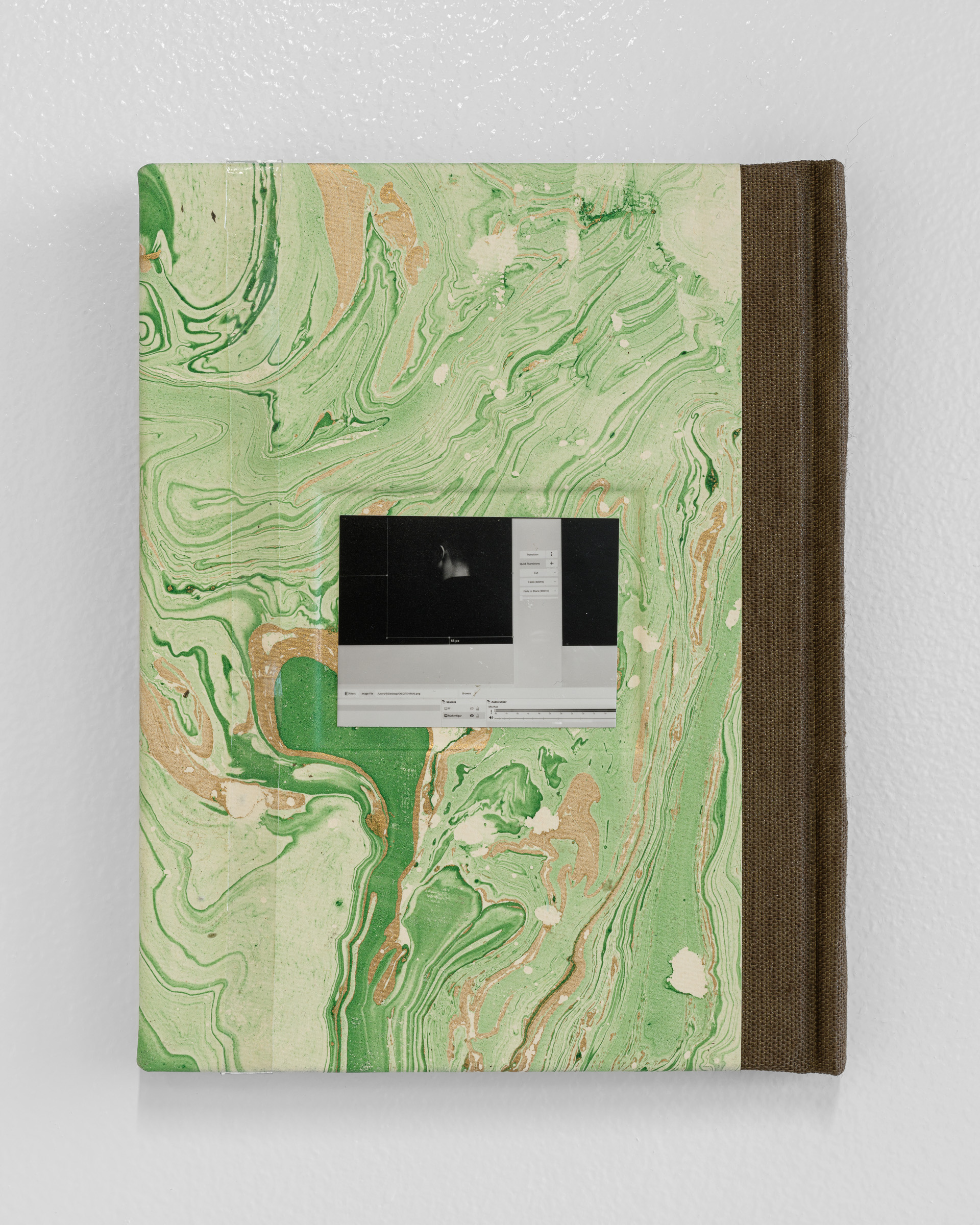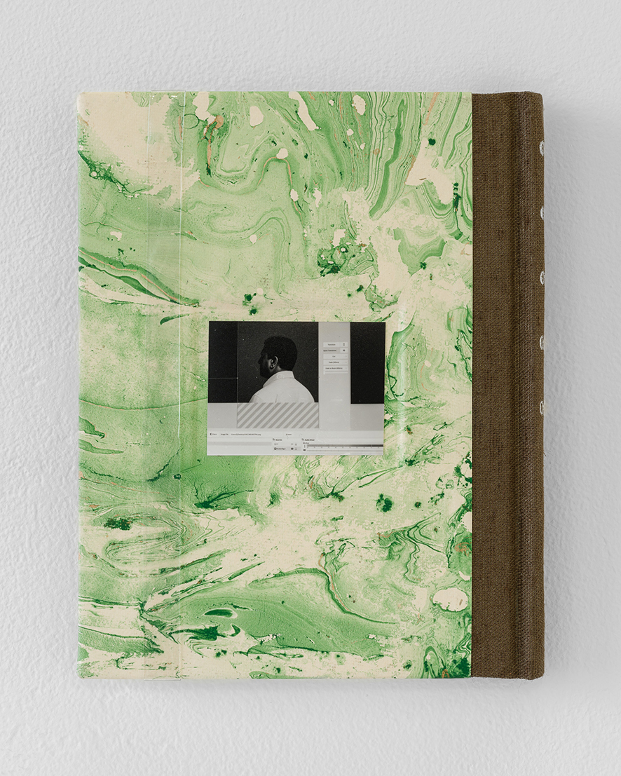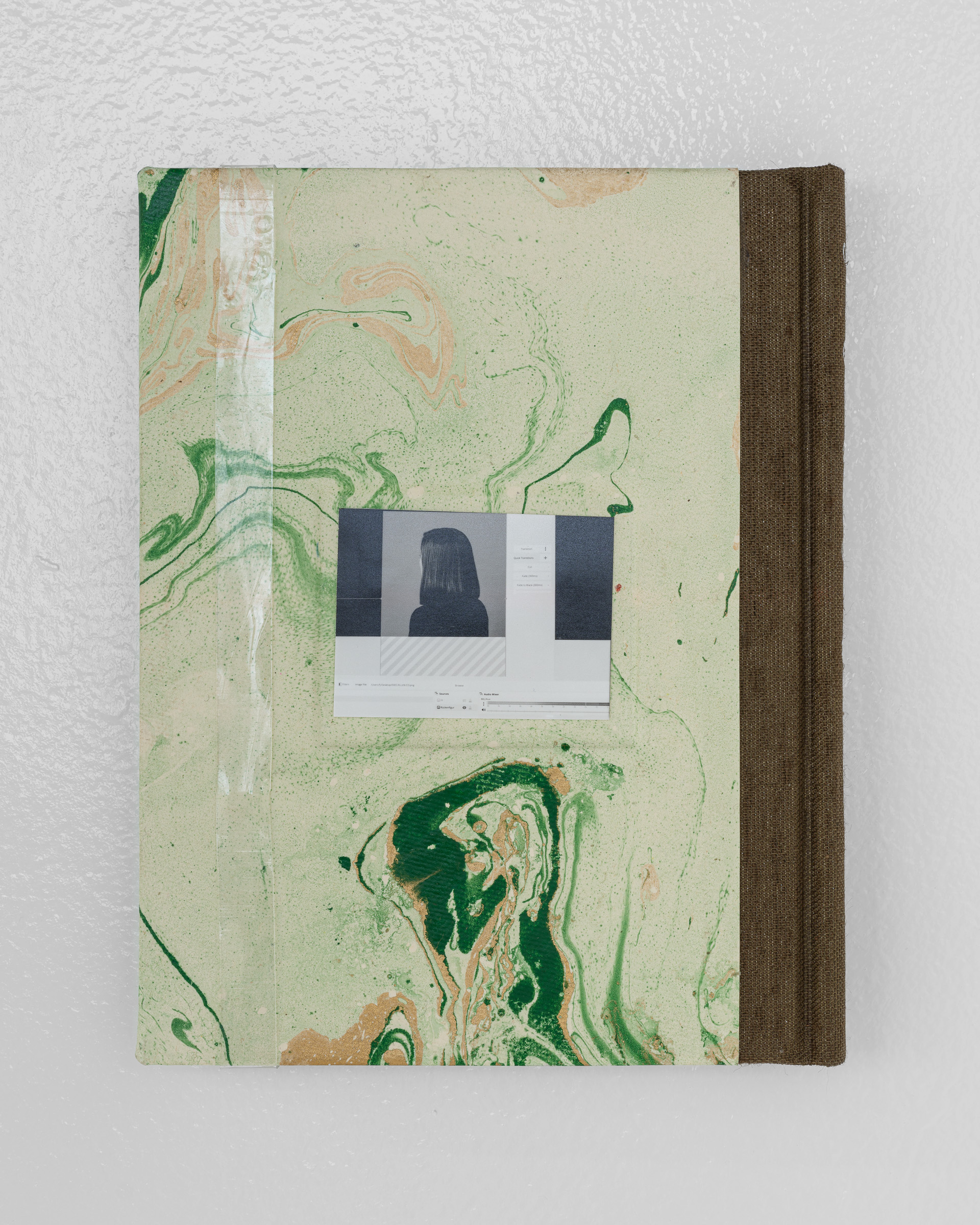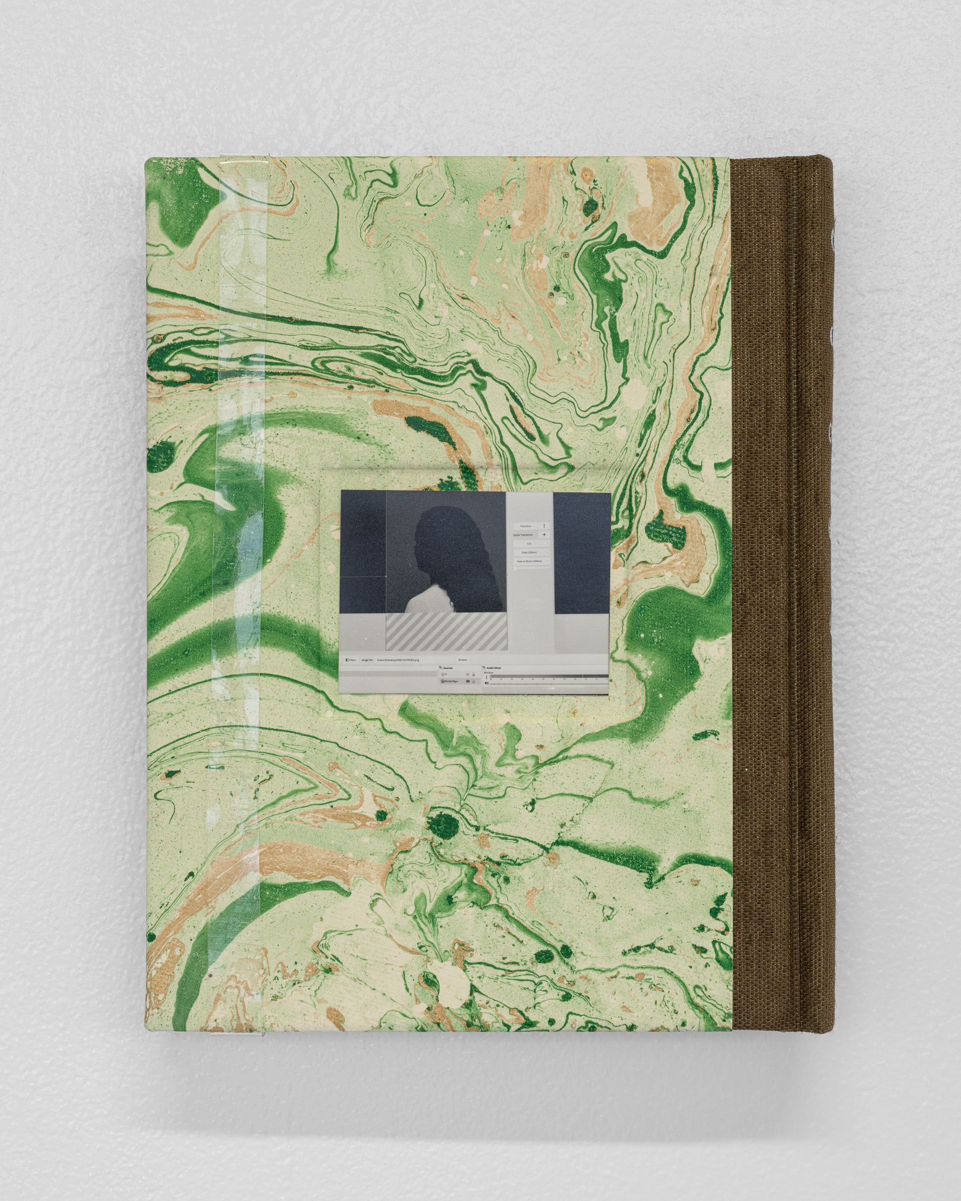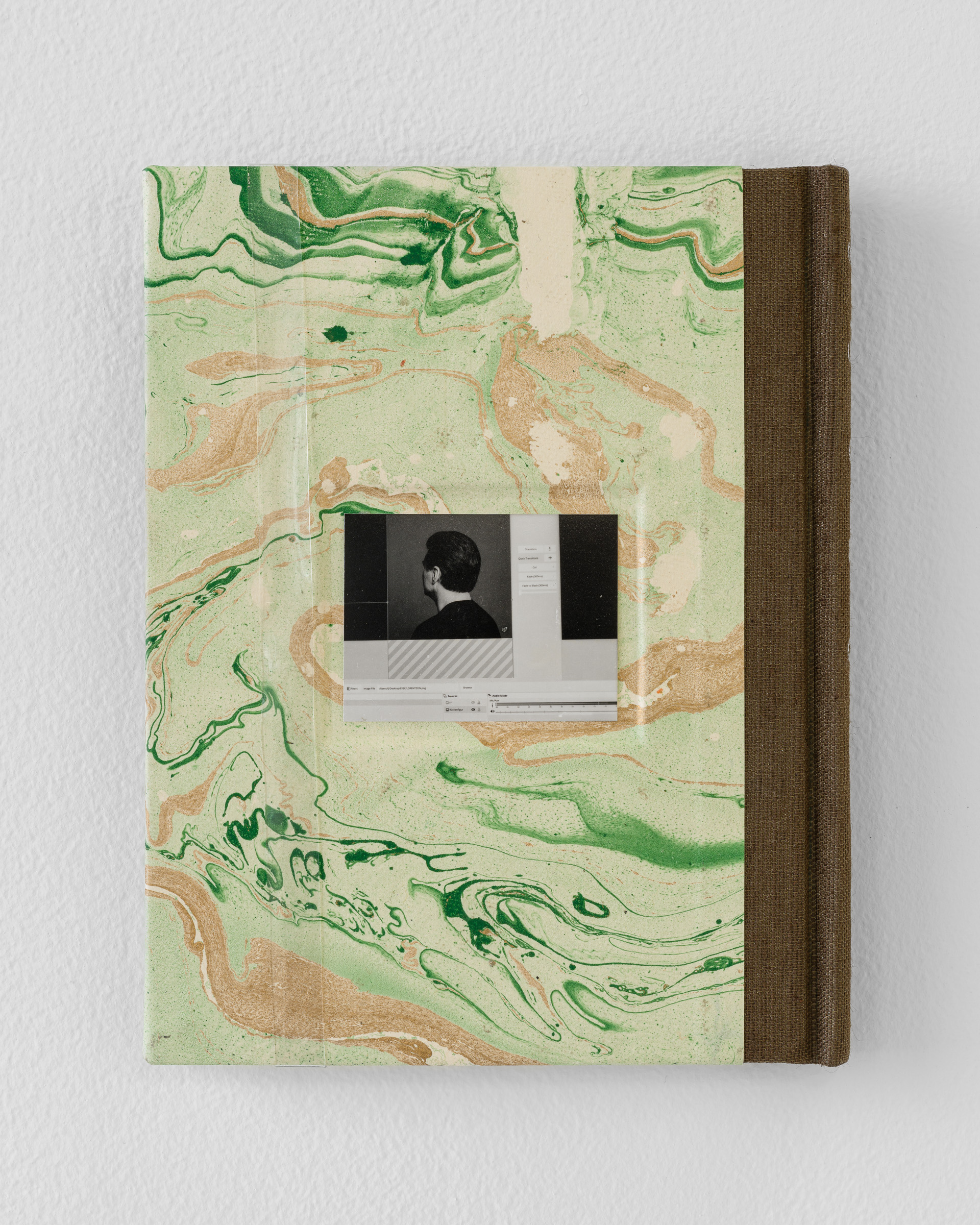 Woody Marshall / Of Contact Prints Of Open Broadcaster Software Screen Shots Of Rückenfigur Portraits Of Streaming Services Executives Of, 2025, 80 pages, Letterpressed text and tipped in Silver Gelatin Contact Prints, Case Bound, Metal fastener and screws, 14.3 x 18.4cm. Photo: Grégory Copitet