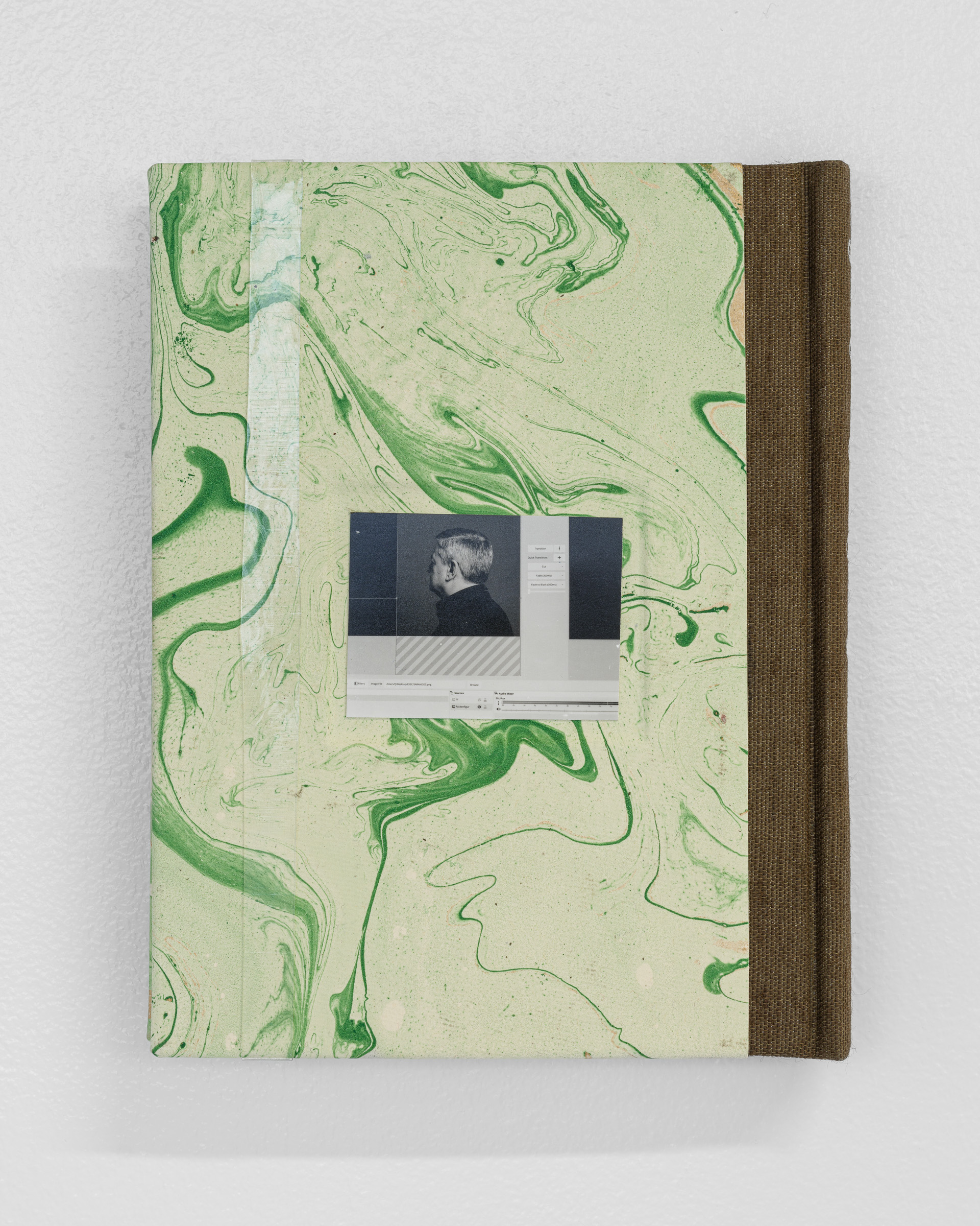 Barry McCarthy / Of Contact Prints Of Open Broadcaster Software Screen Shots Of Rückenfigur Portraits Of Streaming Services Executives Of, 2025, 80 pages, Letterpressed text and tipped in Silver Gelatin Contact Prints, Case Bound, Metal fastener and screws, 14.3 x 18.4cm. Photo: Grégory Copitet