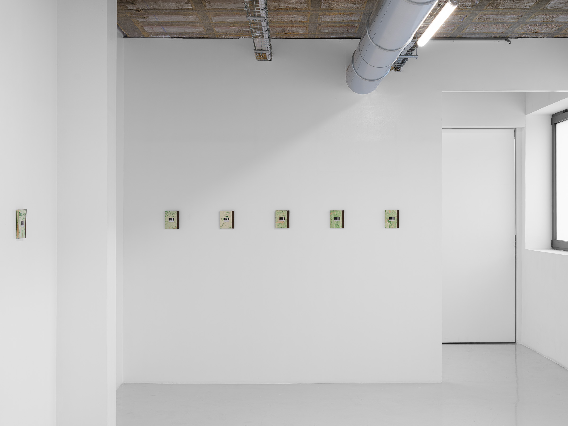 The exhibition centers around Jamison’s latest publication: a hand-bound, eighty-page book that presents black- and-white silver gelatin photographs printed as contact sheets and inserted manually, with letterpressed poems on carbonless copy paper, a process he frequently employs. The edition is limited to nineteen copies, each with a wall-mounting rail embedded into the cover, allowing the books to be hung on the gallery walls.