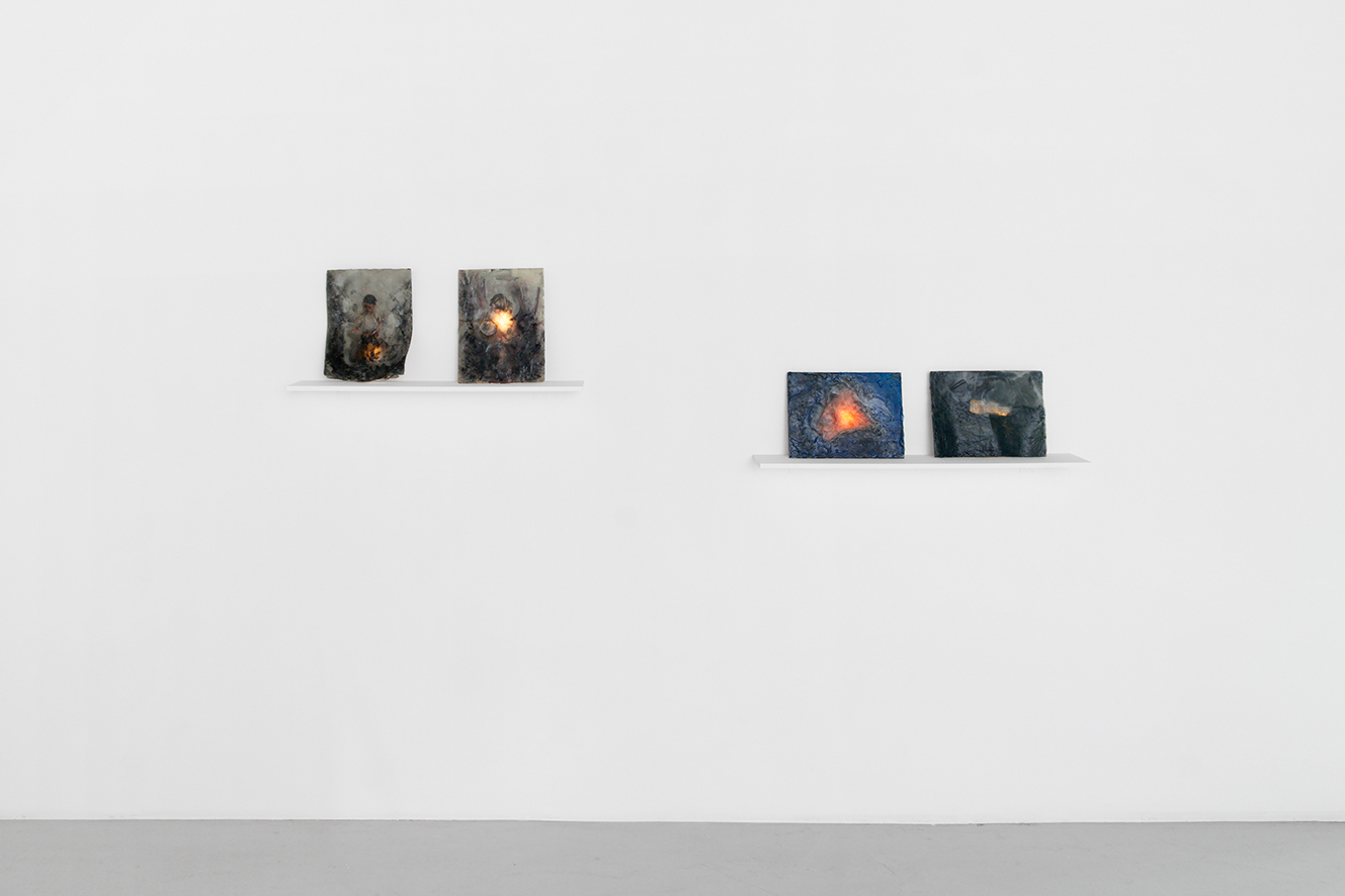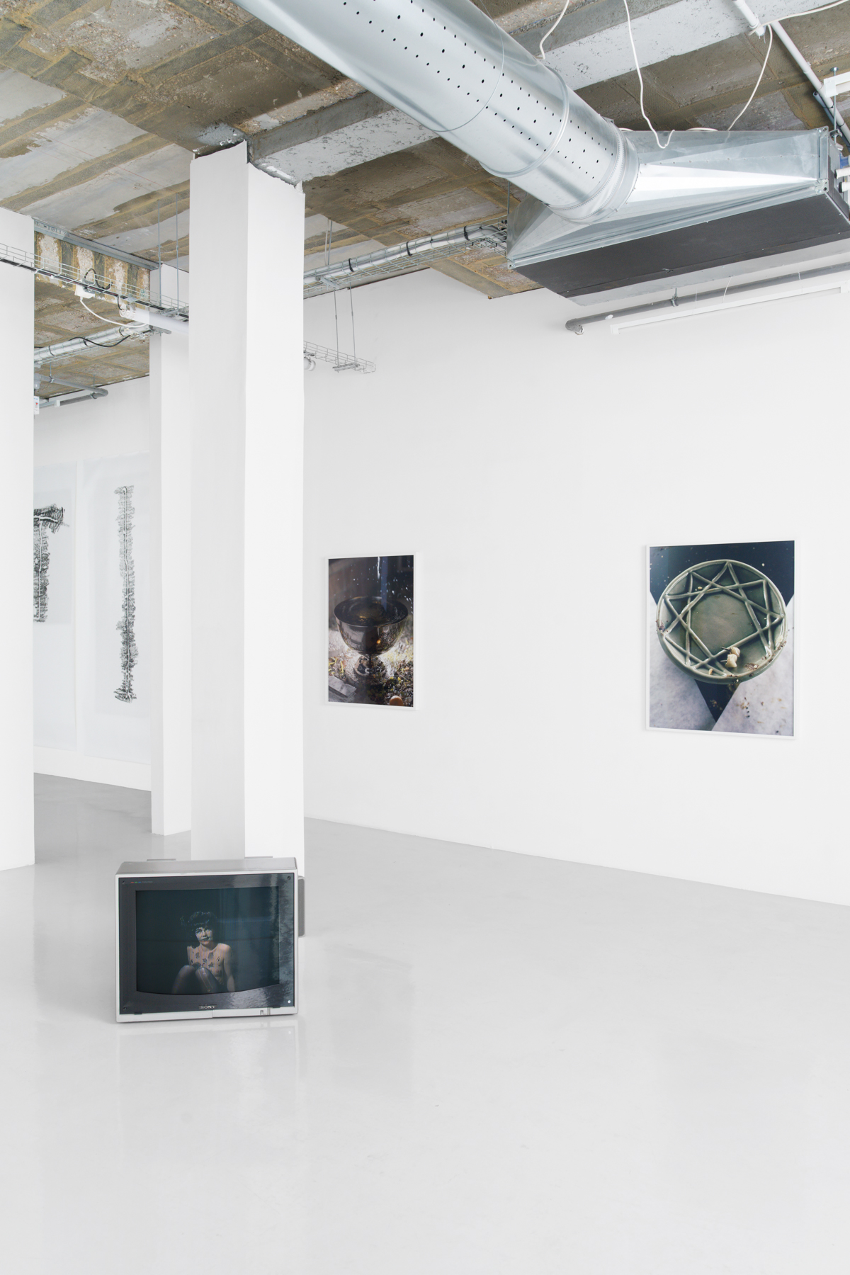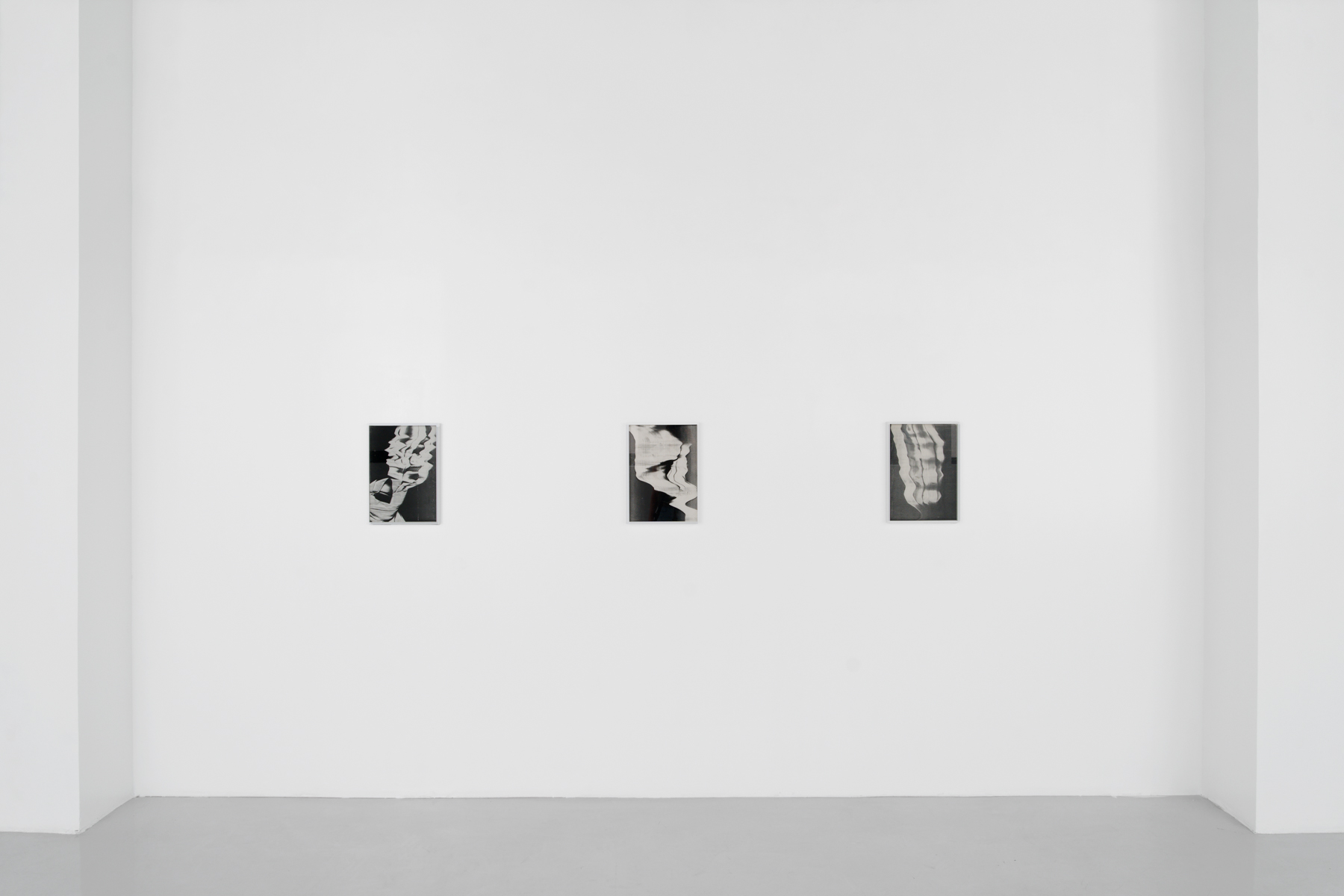 In a disturbing play with scale, Tom Allen’s Polished Shell appears oversized, dwarfing the landscape behind it and evoking an alien-like creature. Similarly, Trisha Donnelly’s blown-out tracings of the cracks left by a termite suggest the hidden presence of much bigger parasite. Brice Dellsperger’s pastiche of Brian de Palma’s The Black Dahlia in Body Double 23 collapses notions of identity and fiction through glitches, refracting reality. Pati Hill’s Xerographs and Bruno Pelassy’s drawings on wax exude a spectral quality, gesturing towards the ghostly imprints of past lives. Ingrid Luche’s 060919-1510 Forest Knoll films the exterior of an empty house with the cold, mechanical gaze of surveillance, turning absence into a main character. Finally, Torbjørn Rødland disturbs seemingly pristine, magazine-ready images by inserting situations of discomfort and ambiguous intent.