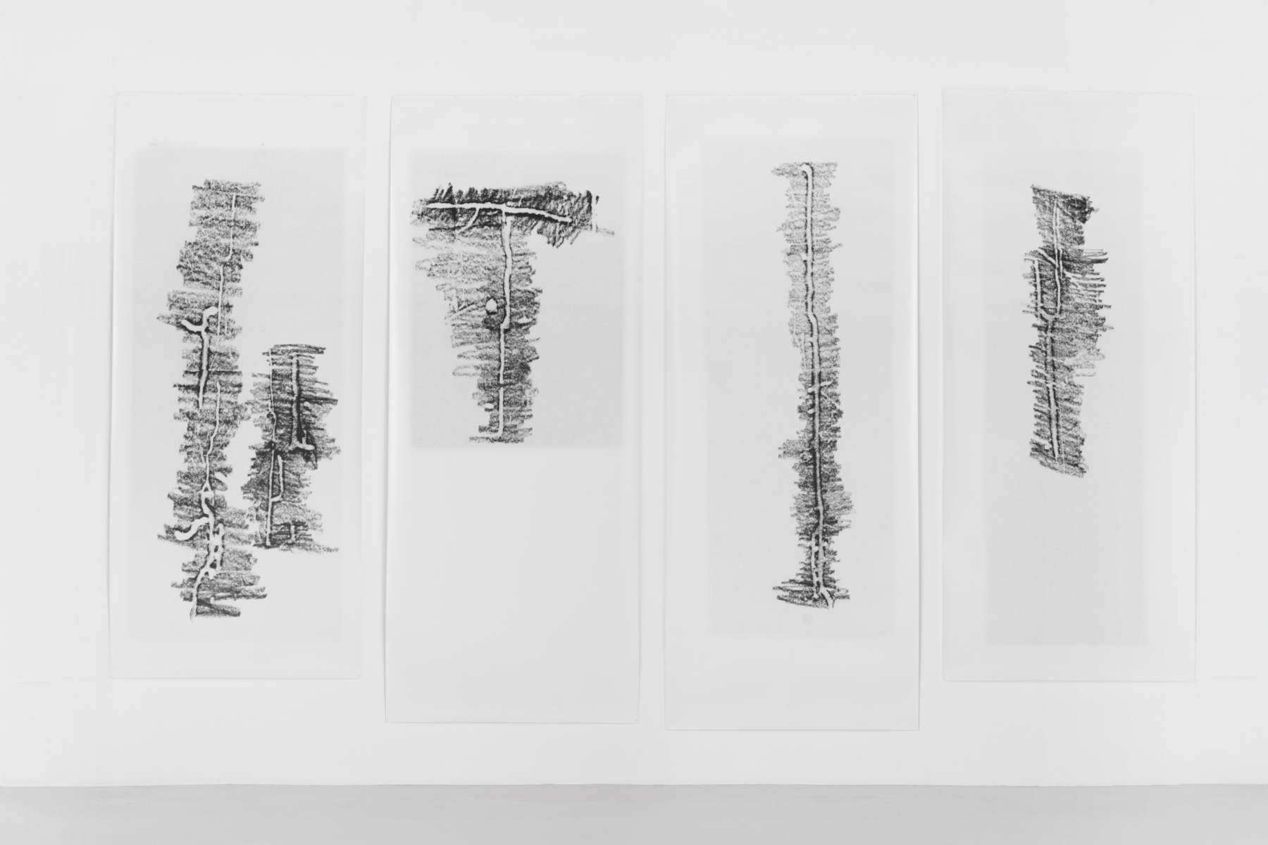 Trisha Donnelly, Untitled, 2005. 4 c-prints (printed by the artist). Variable dimensions: 246 x 106,5 cm, 265 x 106,5 cm, 268 x 106,5 cm, 250 x 106,5 cm. Unique. Photo: Pauline Assathiany.