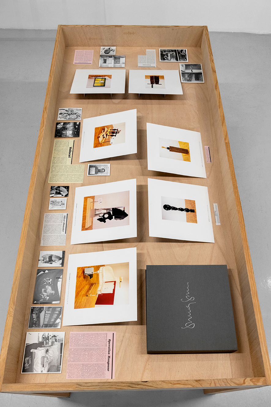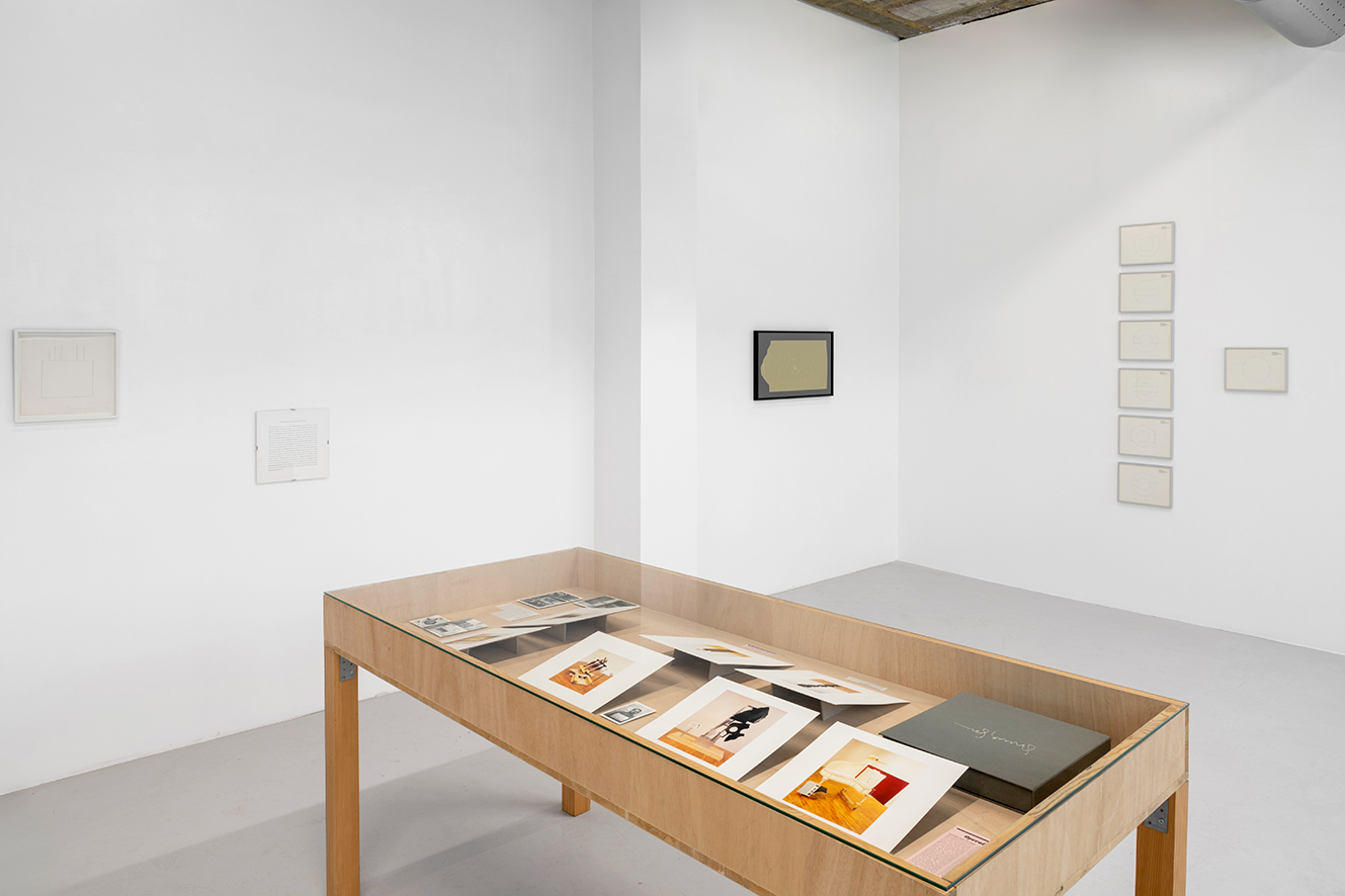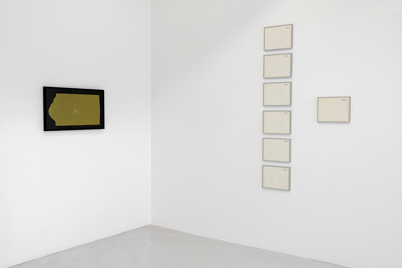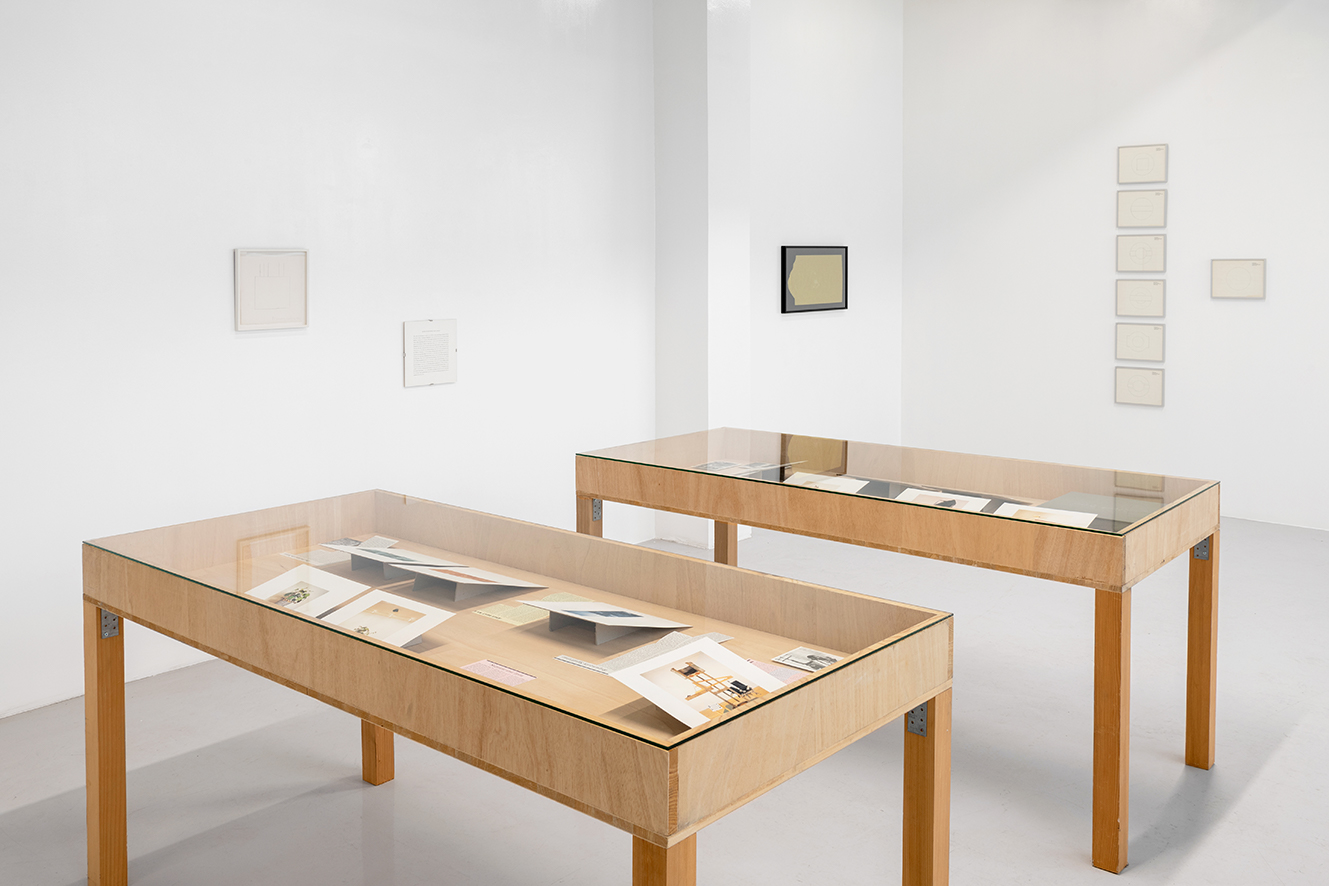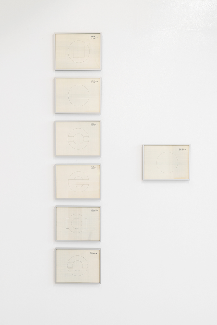 Untitled (Peace Conference Table Design by North Vietnam and The National Liberation Front of South Vietnam, 1969) and Untitled (Peace Conference Table Design by the United States and South Vietnam, 1969), 1986. Set of 7 framed drawings, graphite and artist stamp on letter headed graph paper. 7 x (22,6 x 29,1 cm). Unique. Photo: © Marc Domage