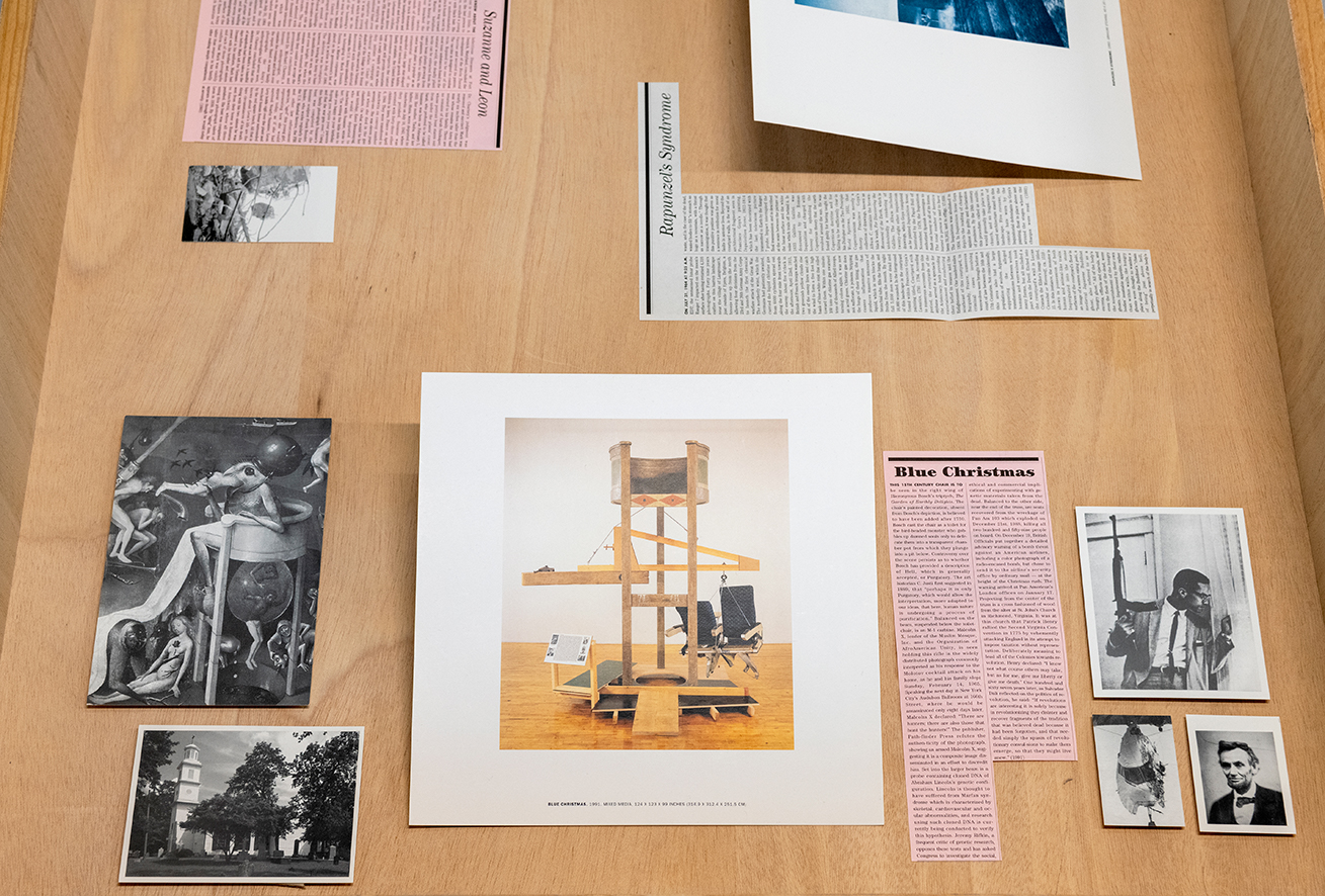 death. Two woodblock prints bracketing the exhibition are impressions of these devices,