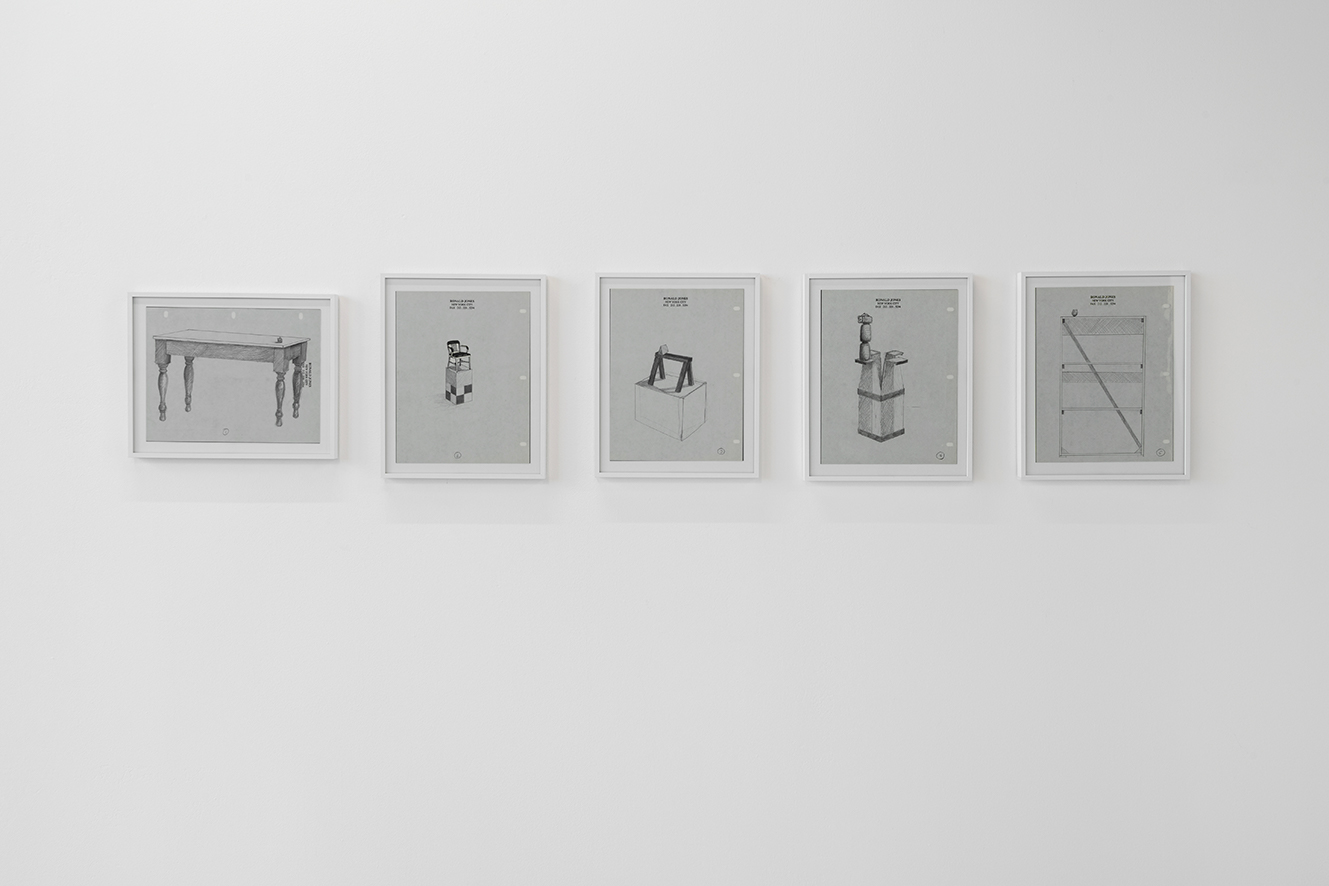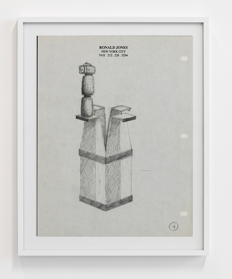 Drawings on Sculptures, nd (approx. 1990). Set of 5 framed drawings ; pencil on artist studio letterhead paper. 1 x (26,6 x 33,1 cm) ; 4 x (33,1 x 26,6 cm). Unique. Photo: © Marc Domage