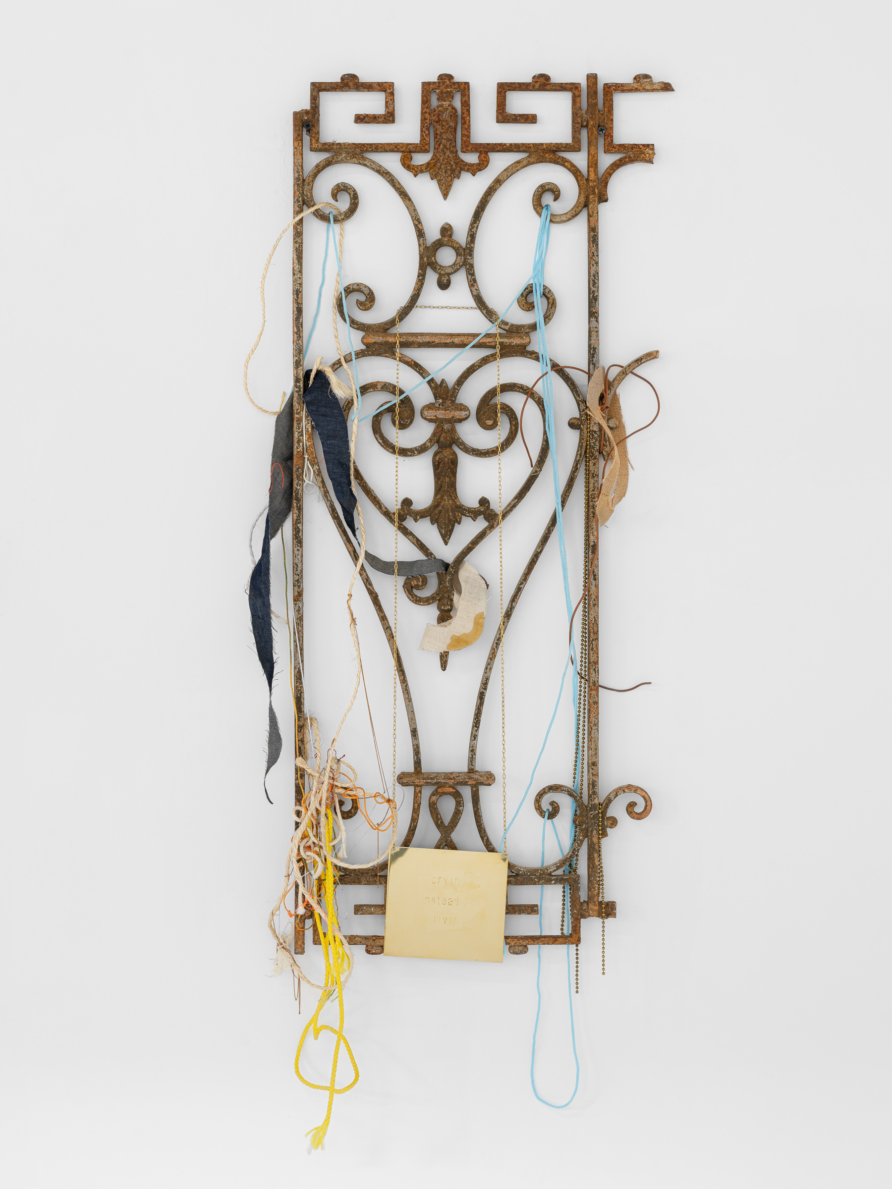 , 2026. Wrought iron, rope, fabric, steel, brass. 117 x 55 x 11 cm. Photo : Grégory Copitet.
