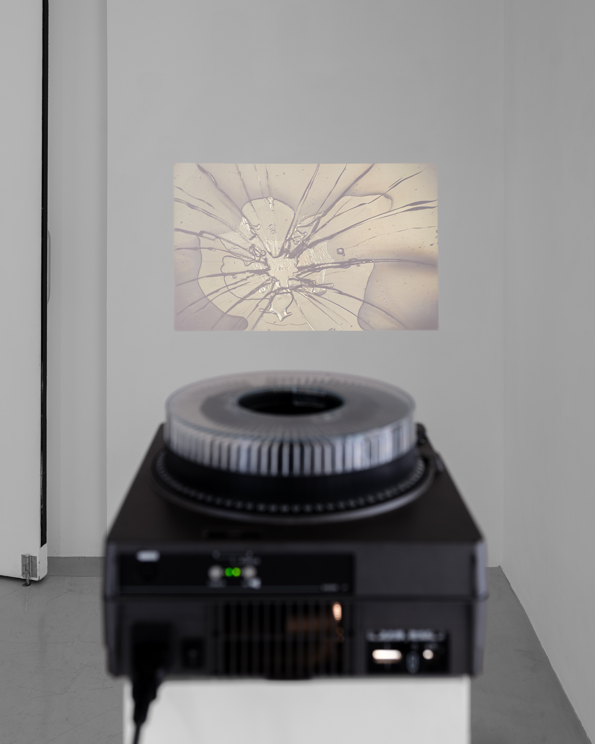 Juliana Borinski, Blank Vol. I , 2014. Slide show (80 slides made of broken glass and glue). Variable dimensions. Photo : Grégory Copitet.