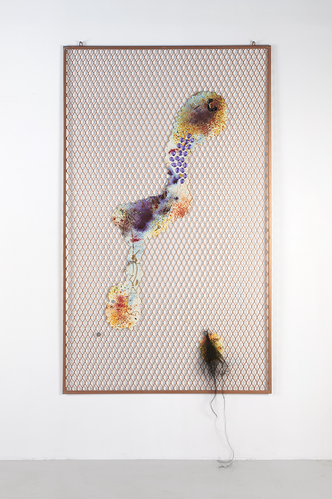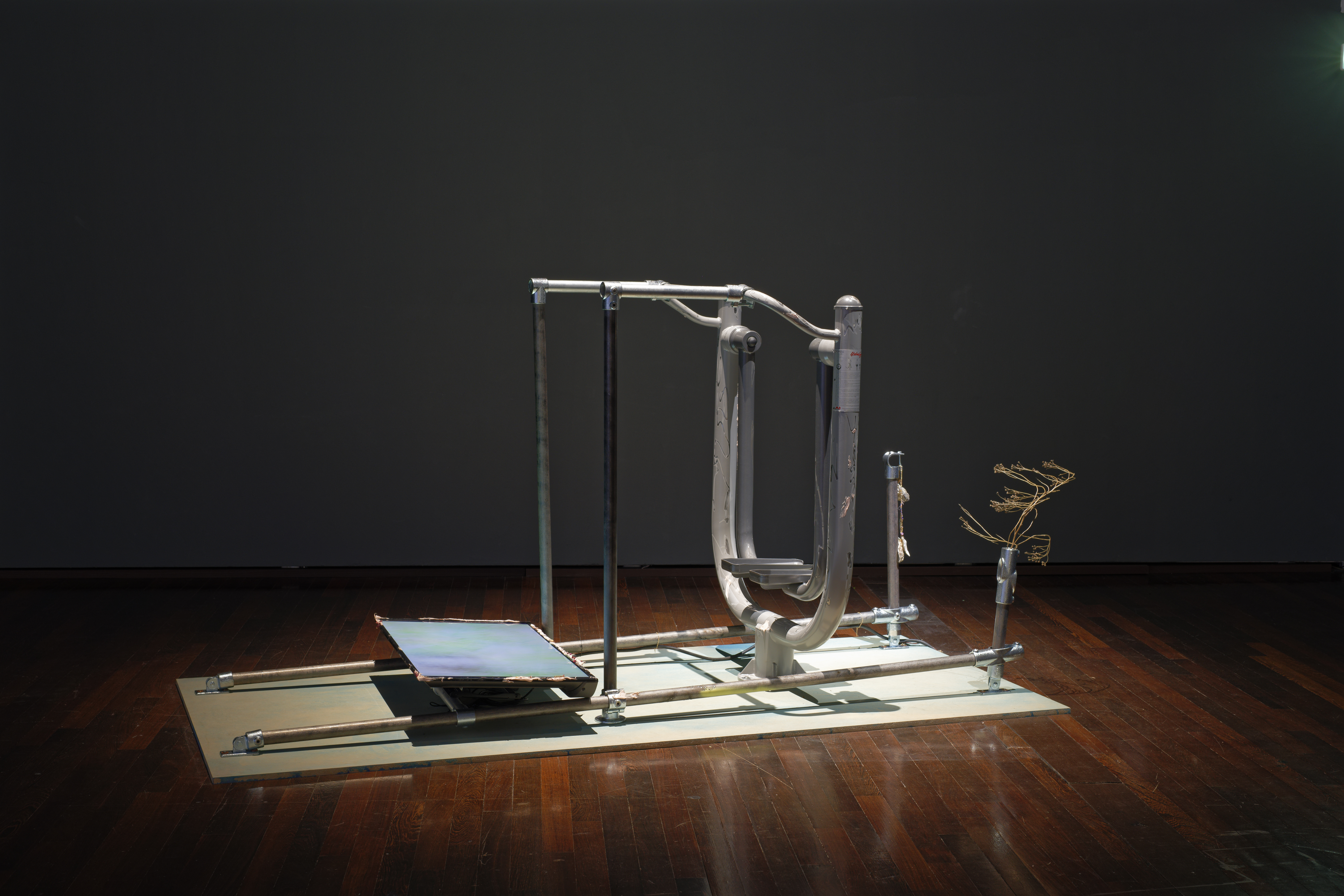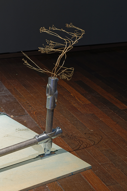 "Workout", metal, stained wood, welding, silicone, flowers, oysters, jewelry, color video, 9'06''
