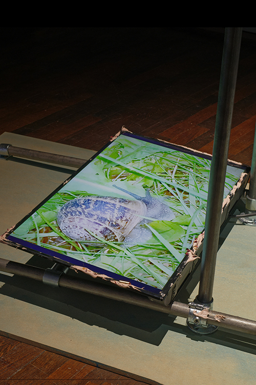 Street gymnastics training structure to strengthen the heart, a tribute to snails, to nature and to slowness. As if weightless, our body is guided by the dance of the snails which carry us along in their rhythm. Slowness is not a sign of stagnation, even if appearances are deceptive. A poetic message about persistence and temperance. Justice belongs to all humans and non-humans, slowly but surely.