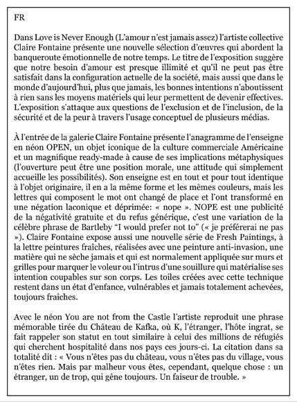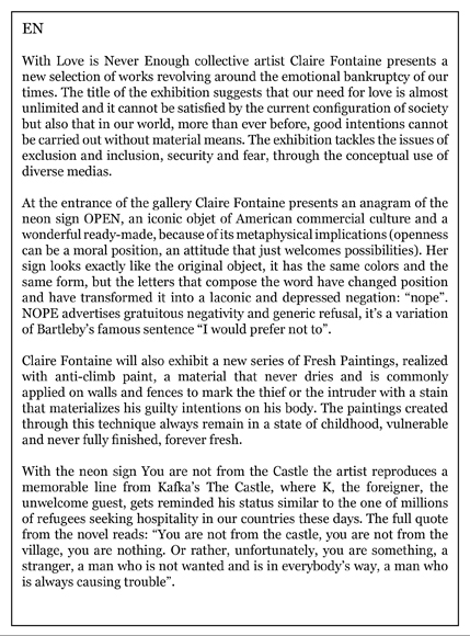 CLAIRE FONTAINE Love is never enough